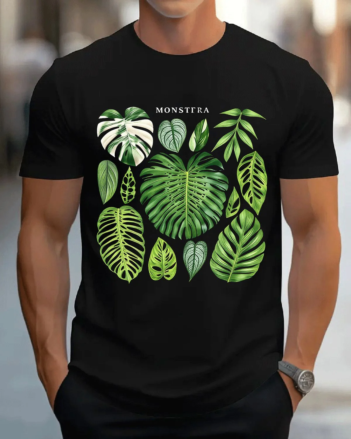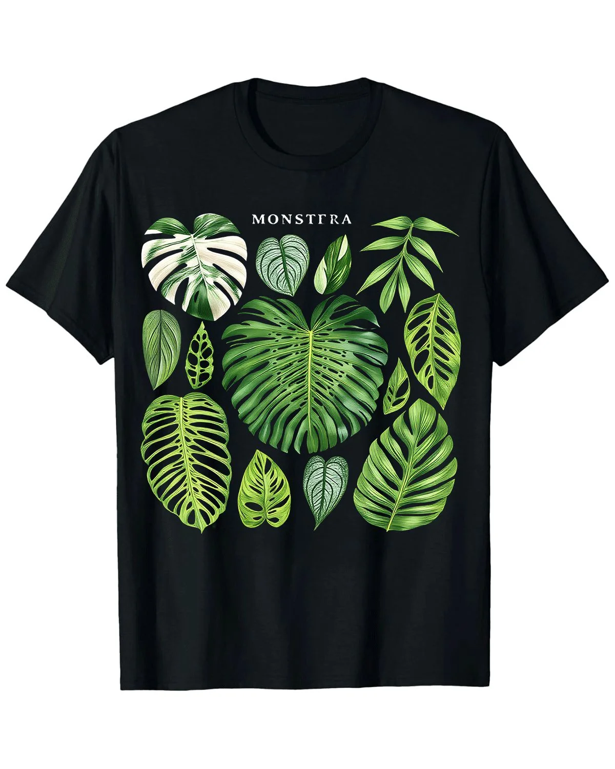 Monstera Tropical Leaves Summer Cotton Graphic T Shirt-Casual Artistic,Short Sleeve,Soft Fabric,Comfortable Fit