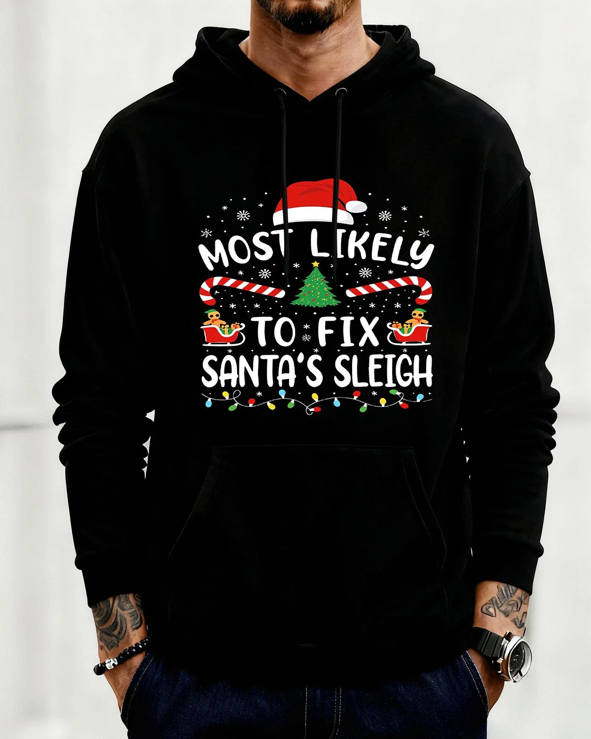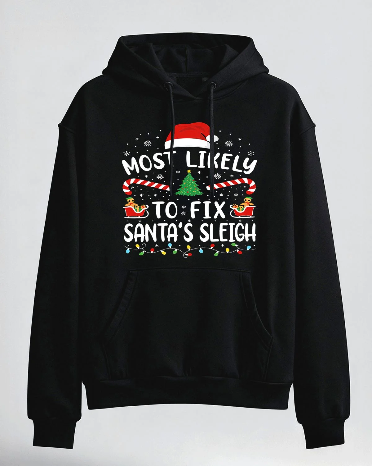 Most Likely to Fix Santa's Sleigh Christmas Cozy Graphic Hoodie for Men and Women - Funny Casual, Long Sleeve, Soft Fabric, Comfortable Fit