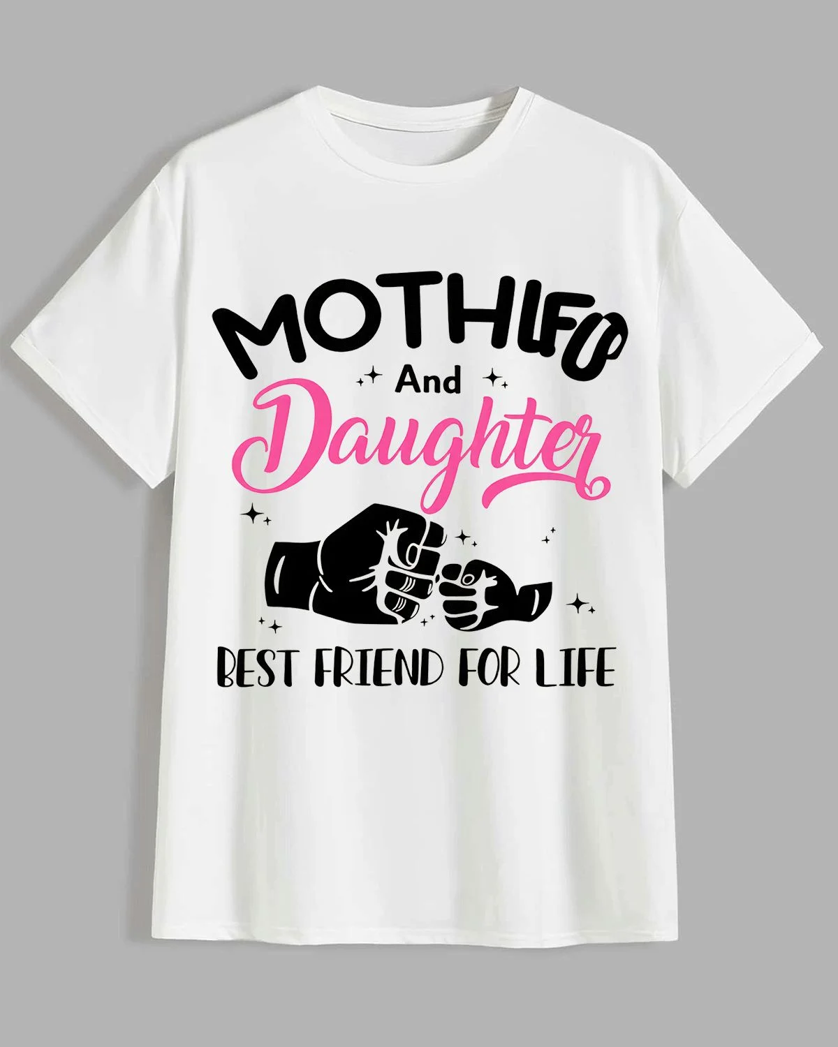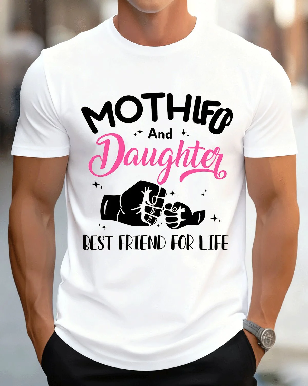 Mother and Daughter Best Friend for Life Summer Cotton Graphic T Shirt - Casual Vintage, Short Sleeve, Soft Fabric, Comfortable Fit