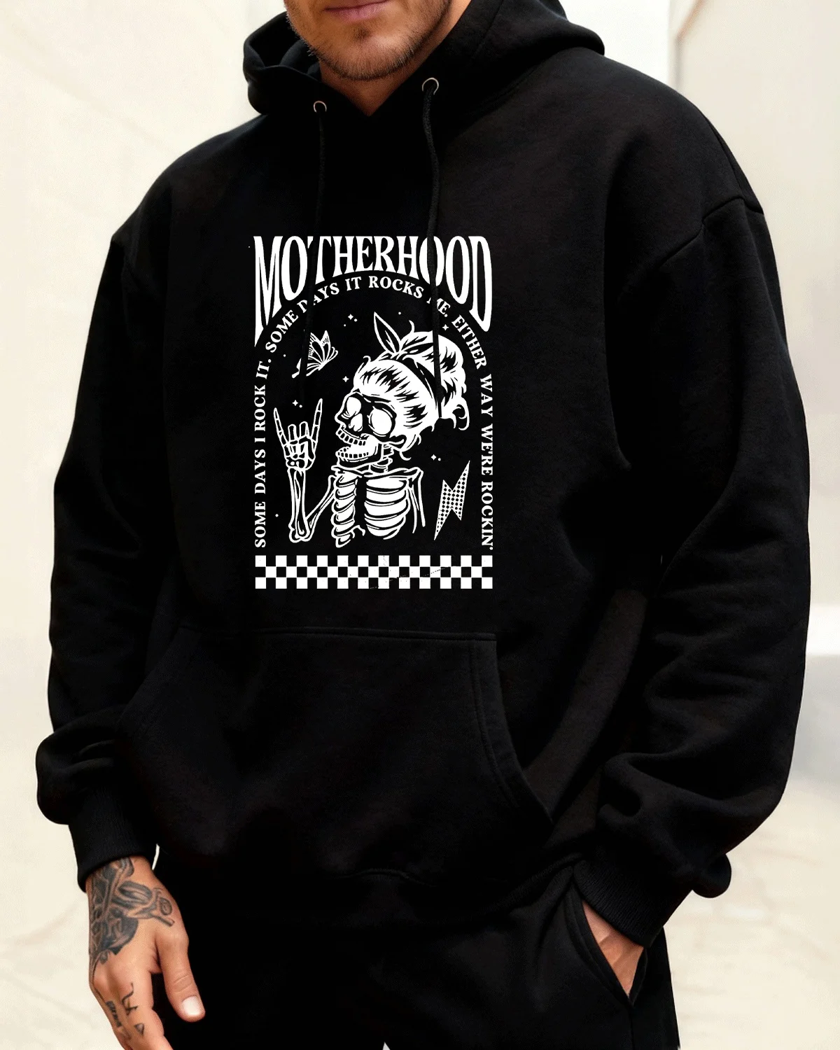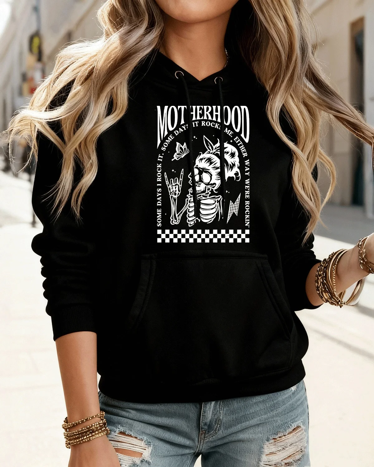 Motherhood Some Days I Rock It Cozy Cotton Graphic Hoodie-Casual Vintage,Long Sleeves,Soft Fabric,Comfortable Fit