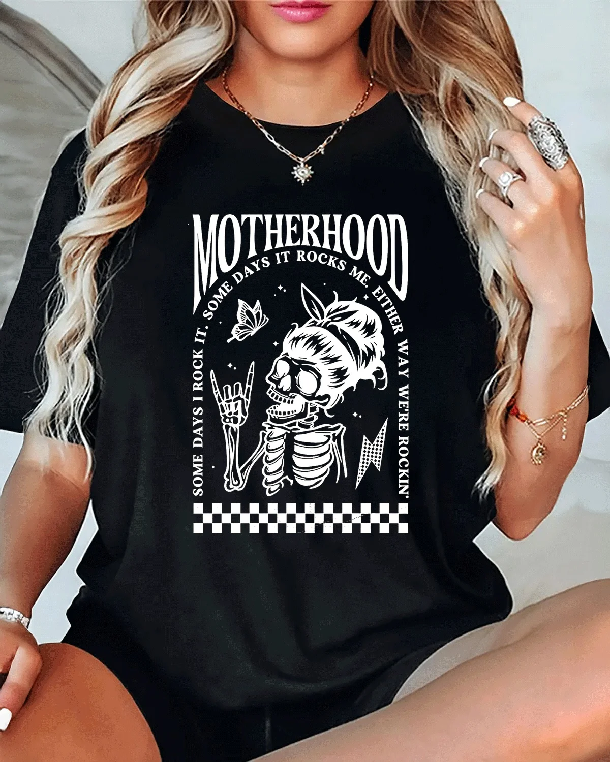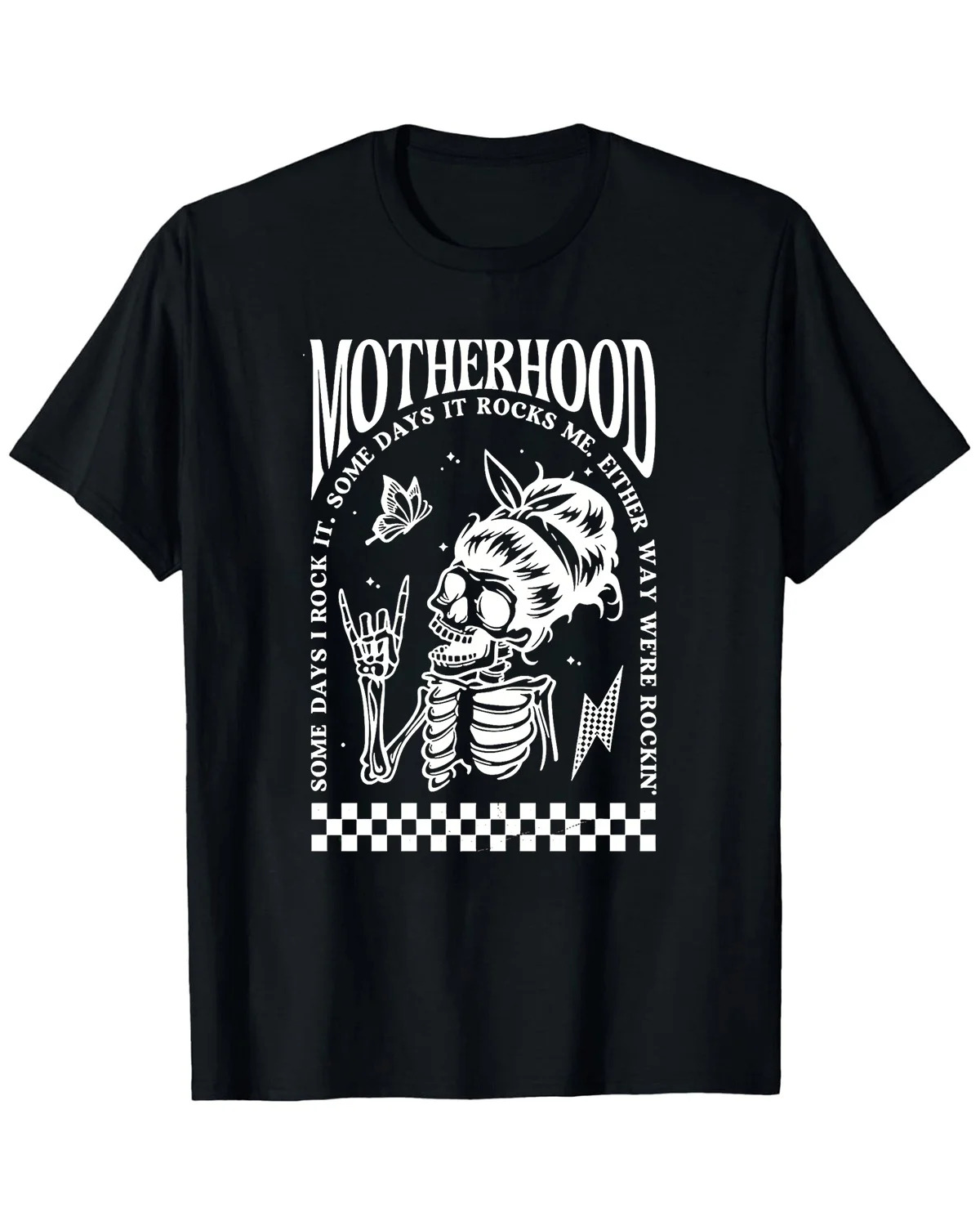 Motherhood Some Days I Rock It Summer Cotton Graphic T Shirt-Casual Vintage,Short Sleeve,Soft Fabric,Comfortable Fit