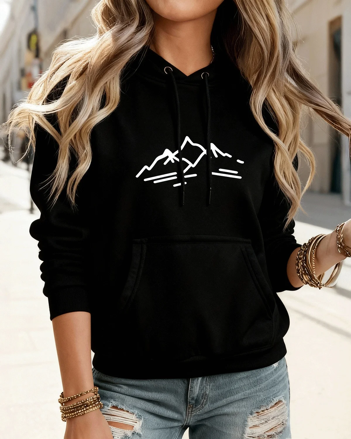 Mountain Outline Cozy Graphic Hoodie for Men and Women - Casual Vintage, Long Sleeve, Soft Fabric, Comfortable Fit