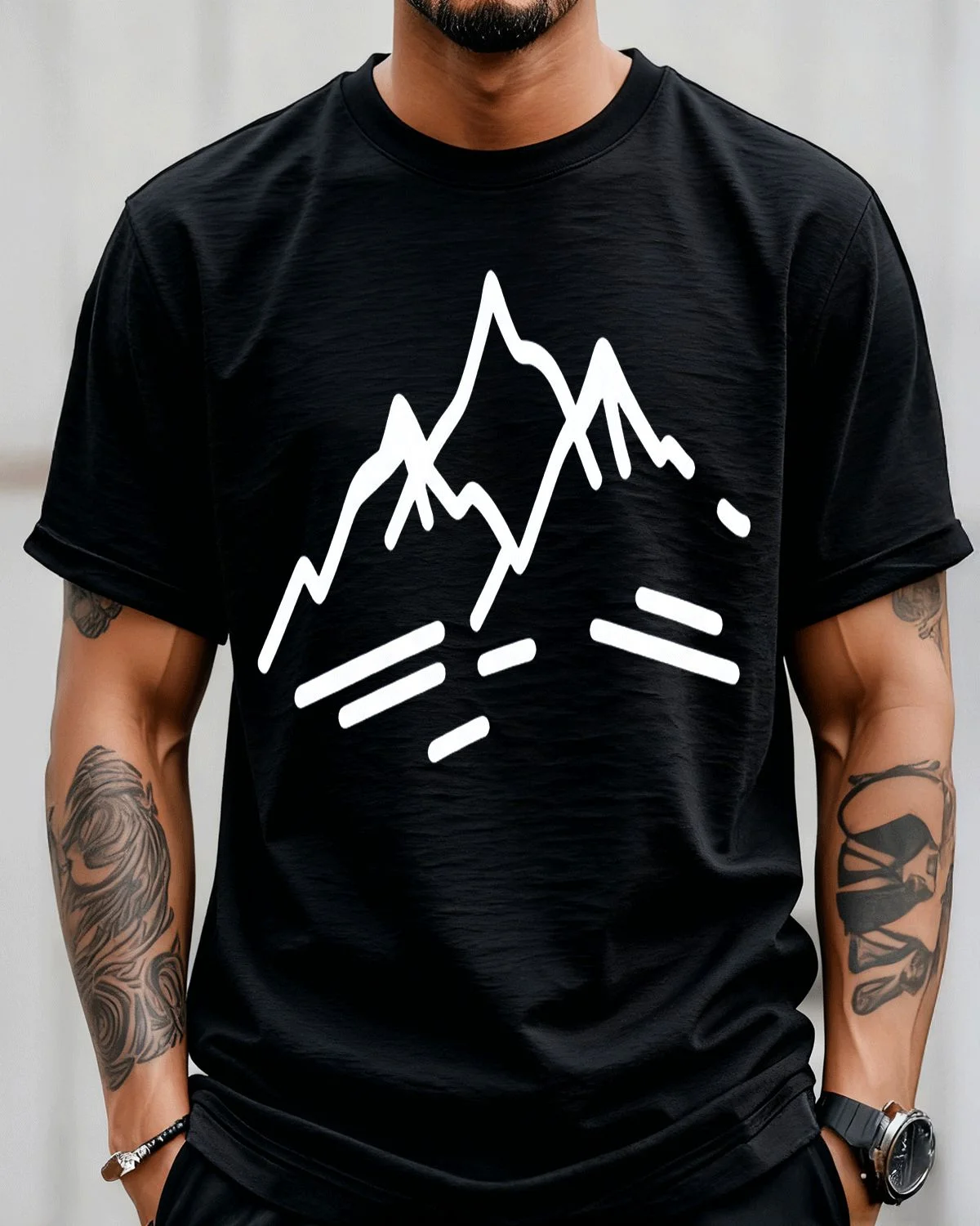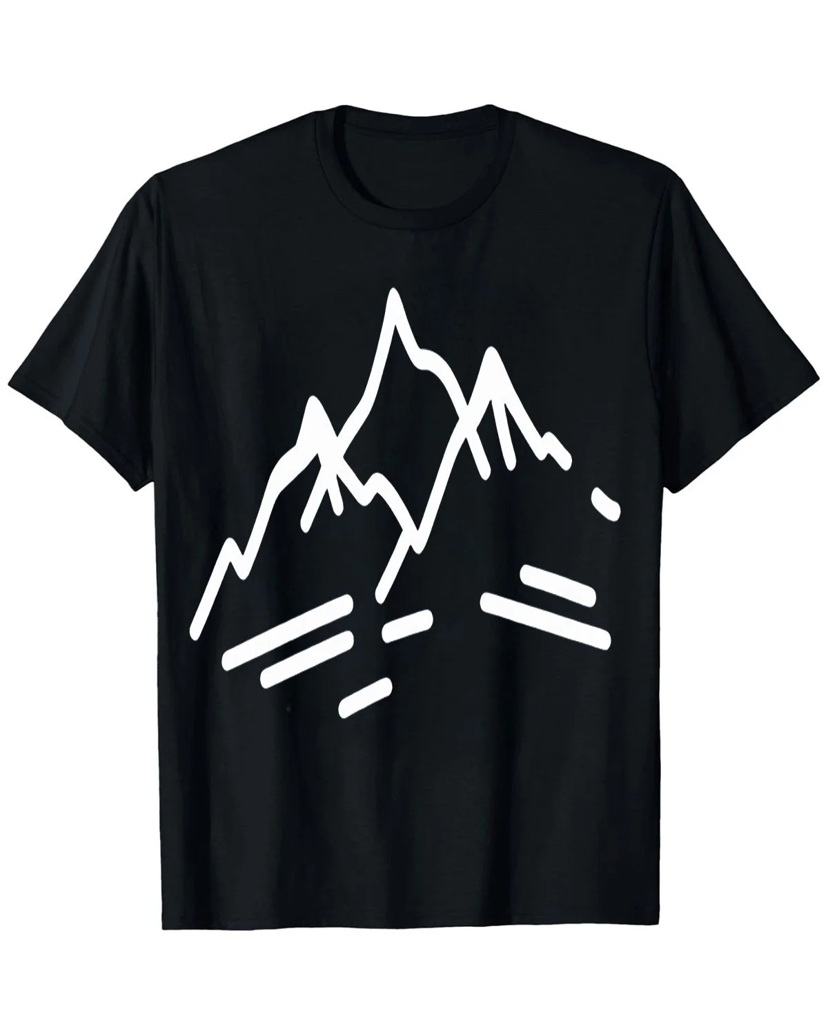 Mountain Outline Summer Cotton Graphic T Shirt - Casual Vintage, Short Sleeve, Soft Fabric, Comfortable Fit
