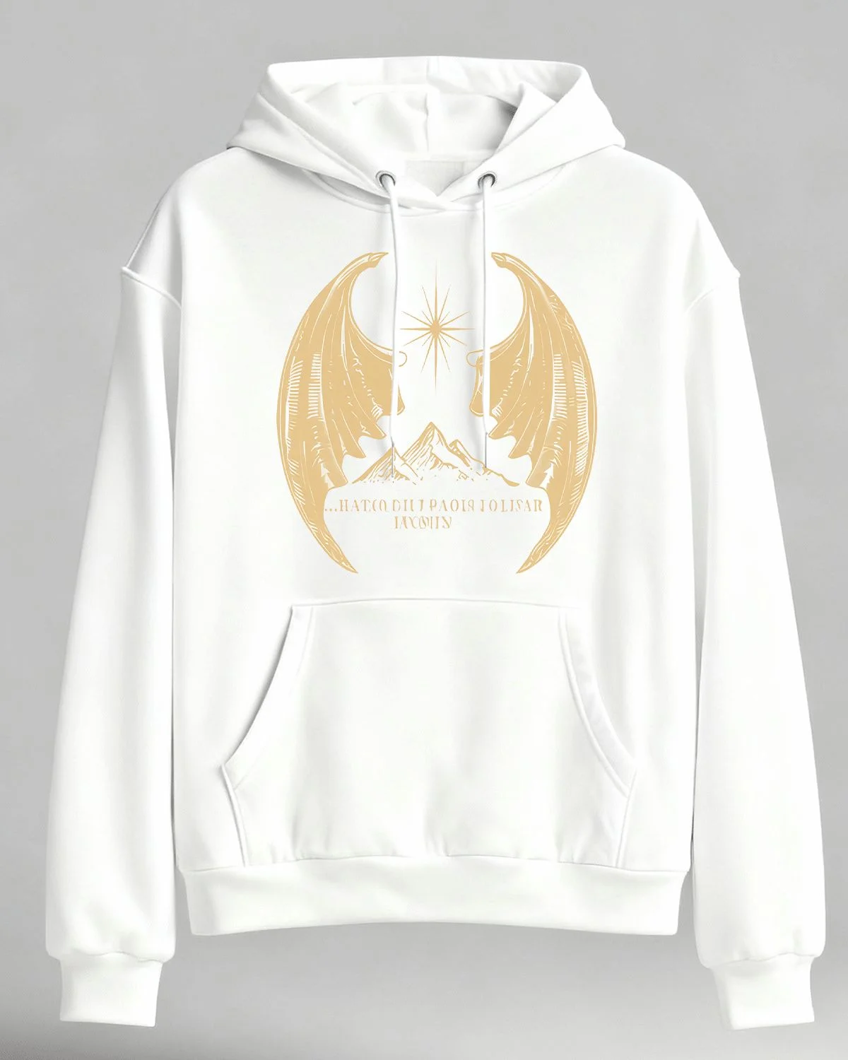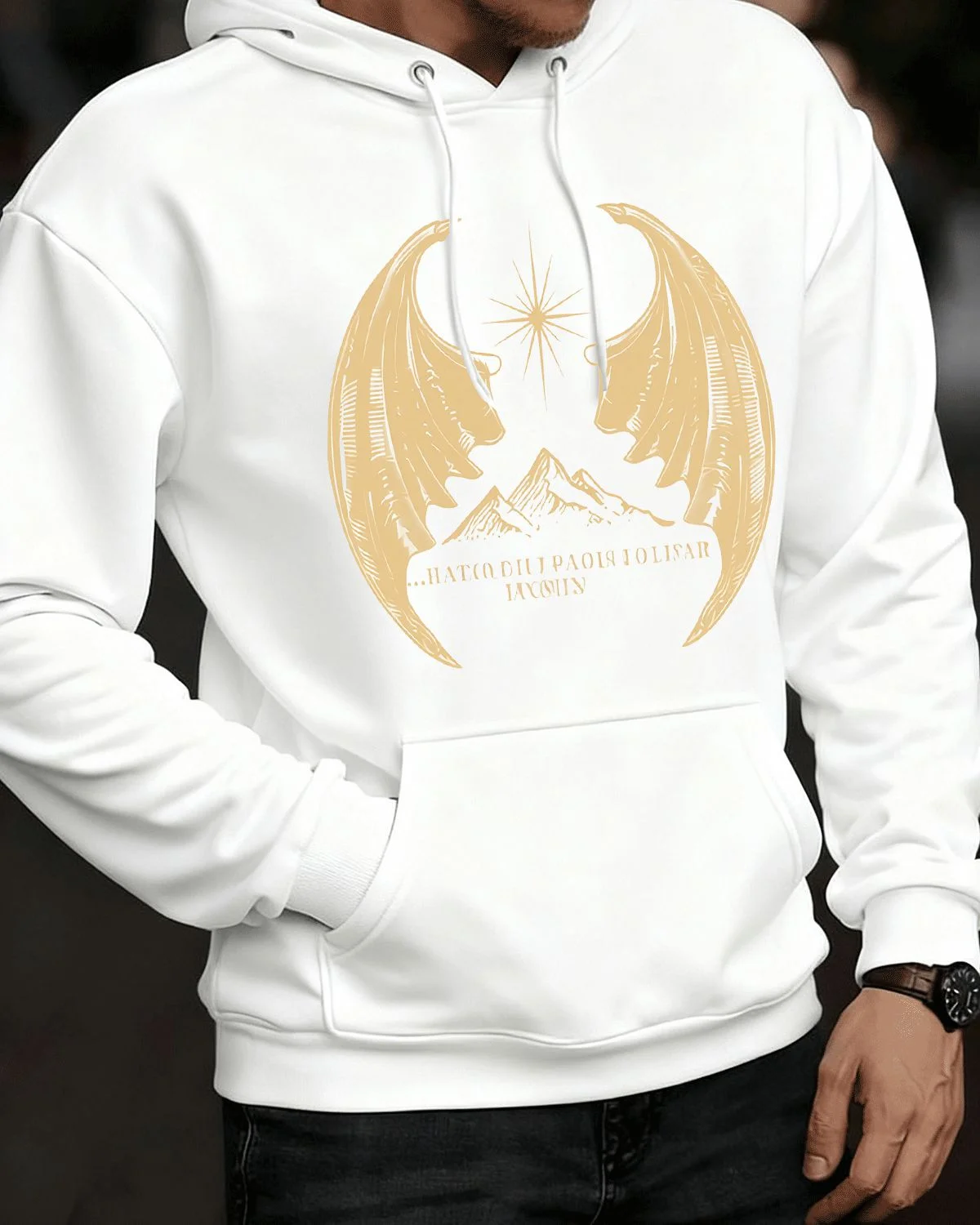 Mountain Star and Dragon Wings Cozy Graphic Hoodie for Men and Women - Vintage Artistic, Long Sleeve, Soft Fabric, Comfortable Fit