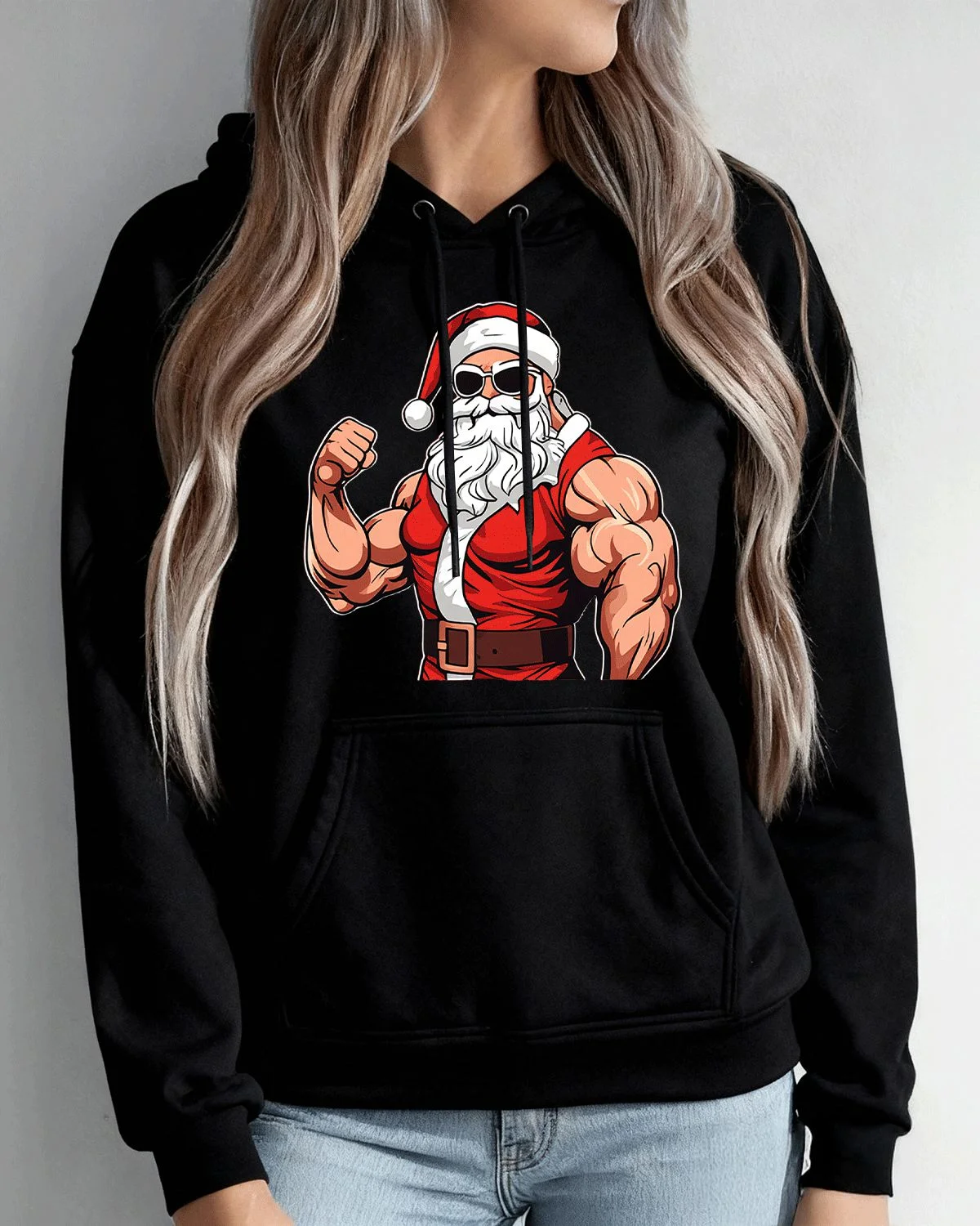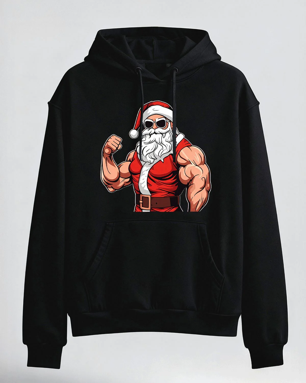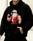 Angry Christmas Cat with Santa Hat and Lights Summer Cozy Graphic Hoodie - Funny Vintage, Long Sleeve, Soft Fabric, Comfortable Fit