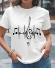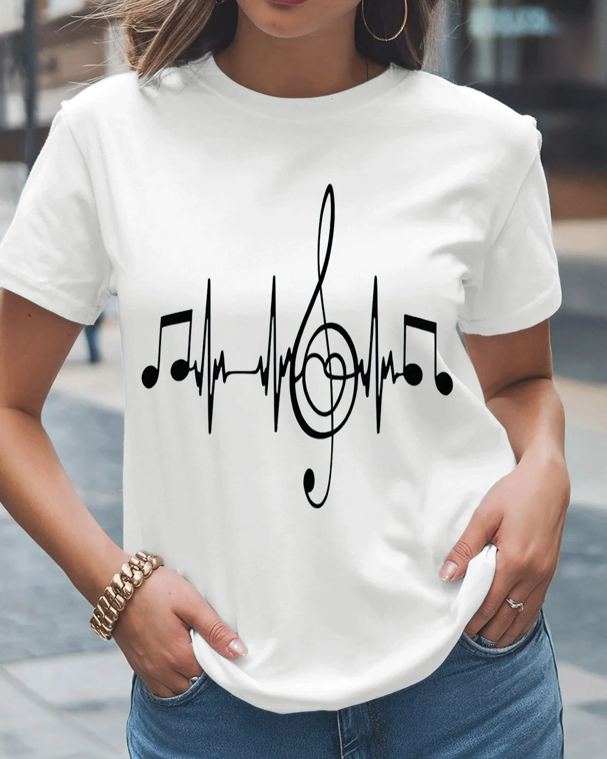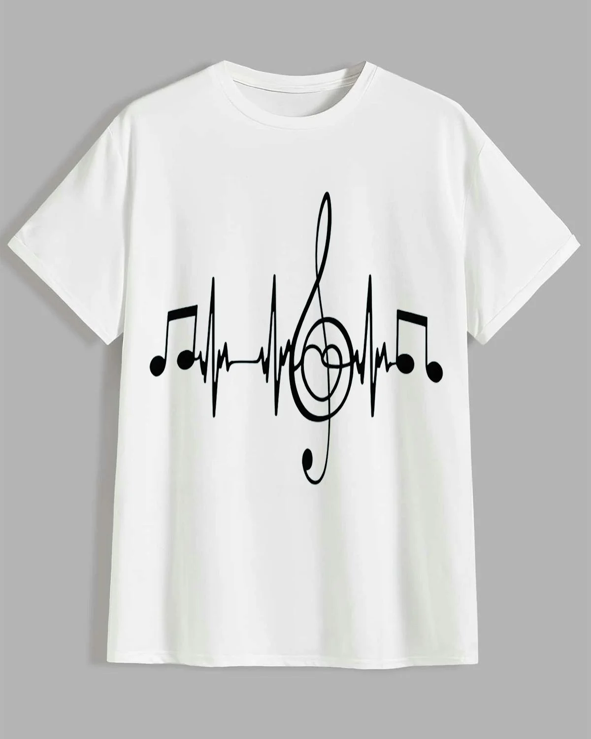 Music Heartbeat Treble Clef Summer Cotton Graphic T Shirt - Casual Artistic, Short Sleeve, Soft Fabric, Comfortable Fit