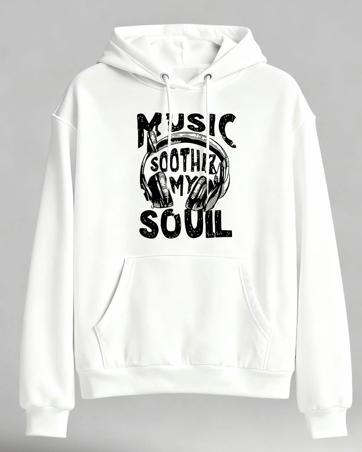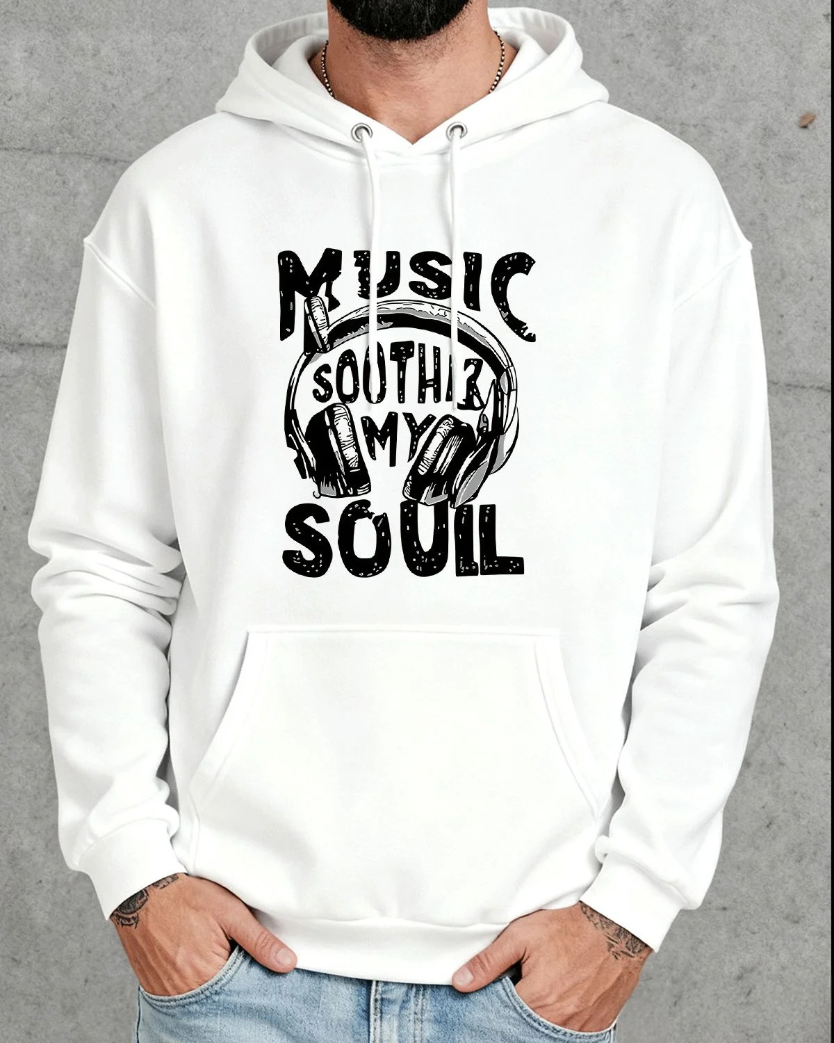 Music Soothes My Soul Cozy Cotton Graphic Hoodie with Pocket-Casual Vintage,Long Sleeve,Soft Fabric,Comfortable Fit