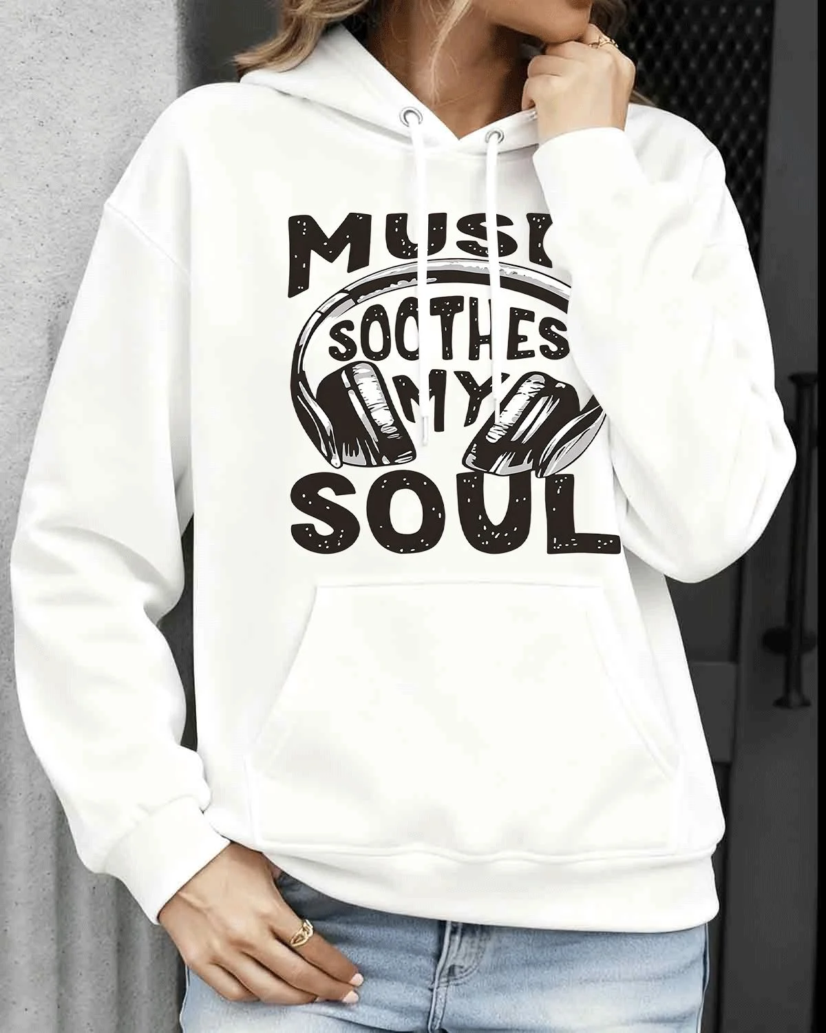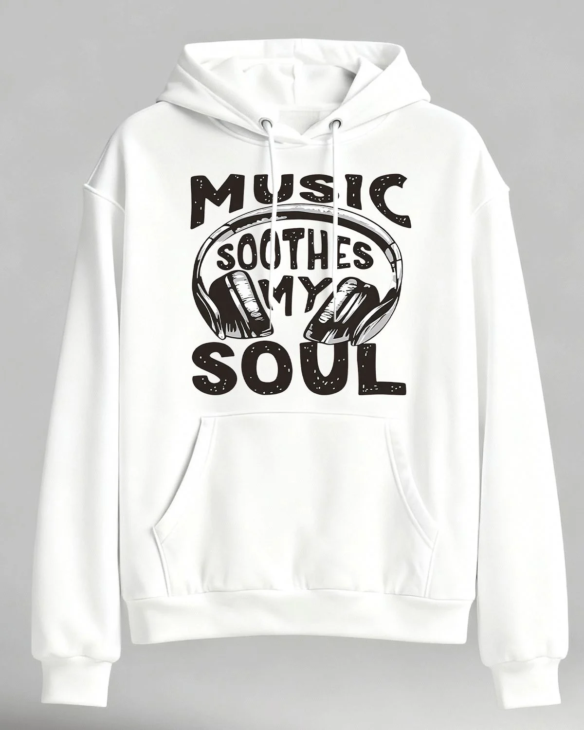 Music Soothes My Soul Cozy Graphic Hoodie for Men and Women - Casual Vintage, Long Sleeve, Soft Fabric, Comfortable Fit