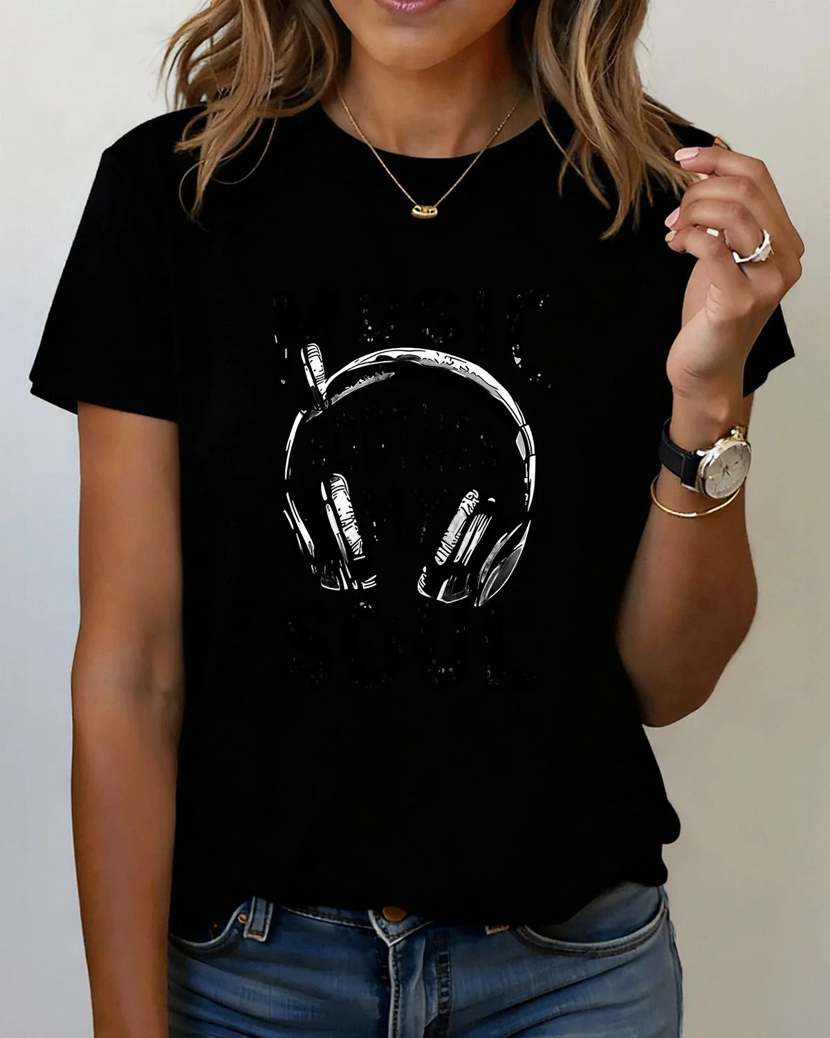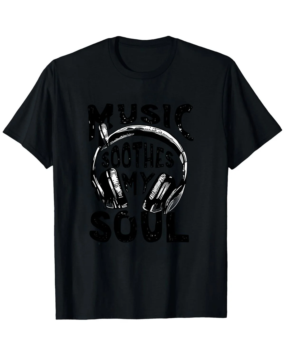 Music Soothes My Soul Summer Cotton Graphic T Shirt - Casual Vintage,Short Sleeve,Soft Fabric,Comfortable Fit