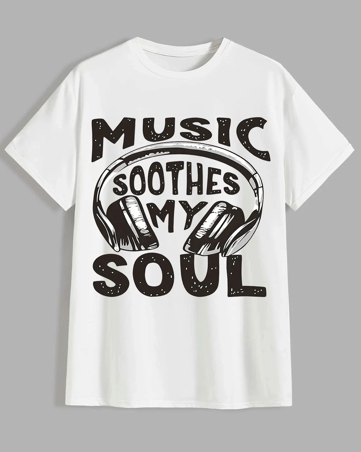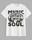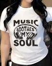 Music Soothes My Soul Summer Cotton Graphic T Shirt - Casual Vintage, Short Sleeve, Soft Fabric, Comfortable Fit