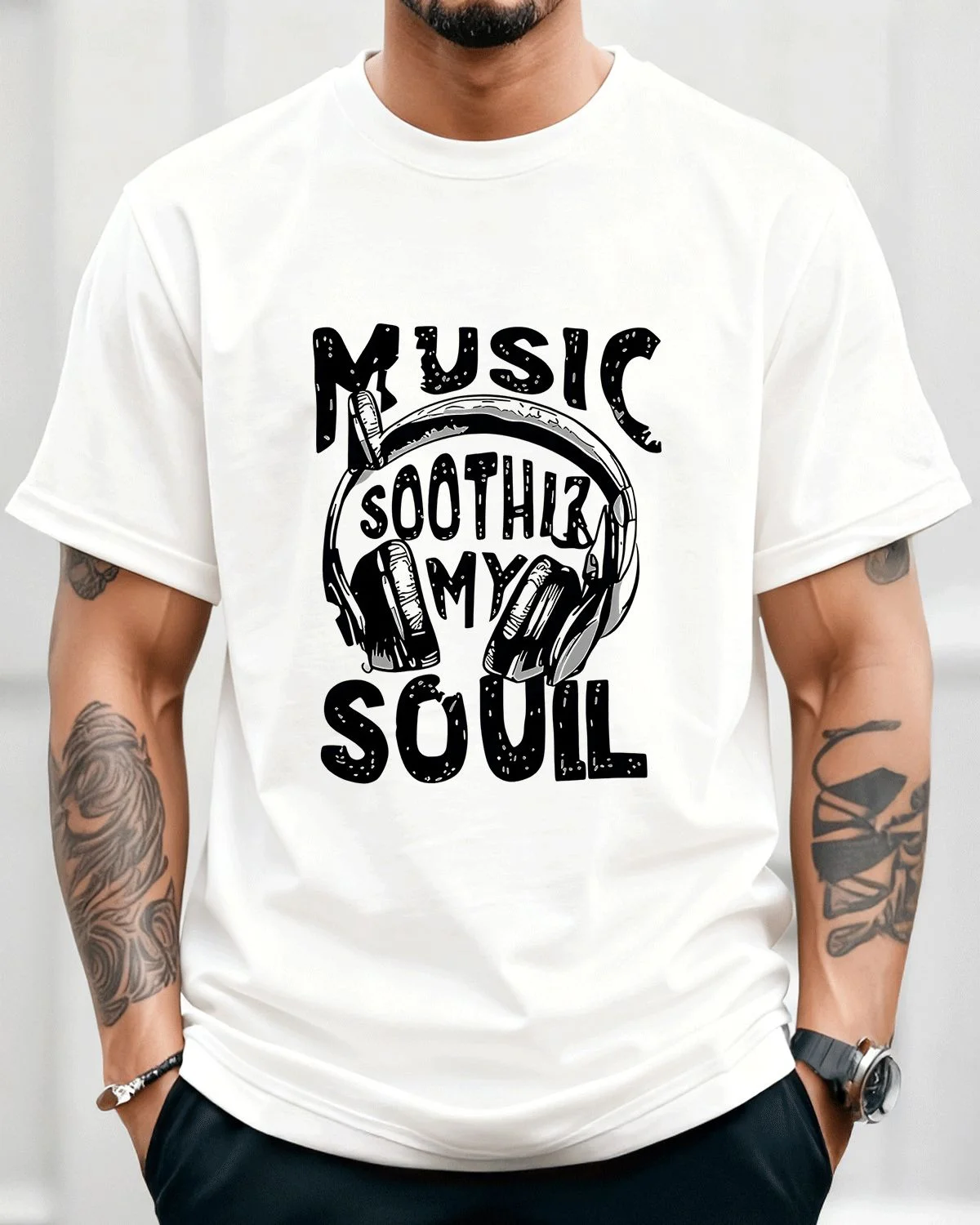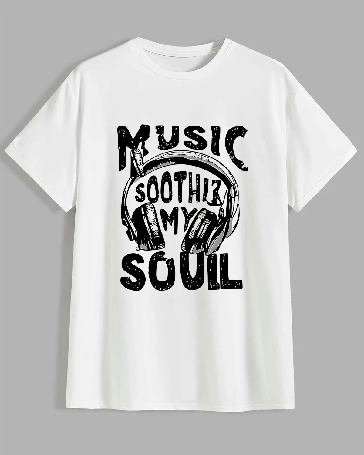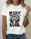 Music Soothes My Soul Summer Cotton Graphic T Shirt - Casual Vintage,Short Sleeve,Soft Fabric,Comfortable Fit