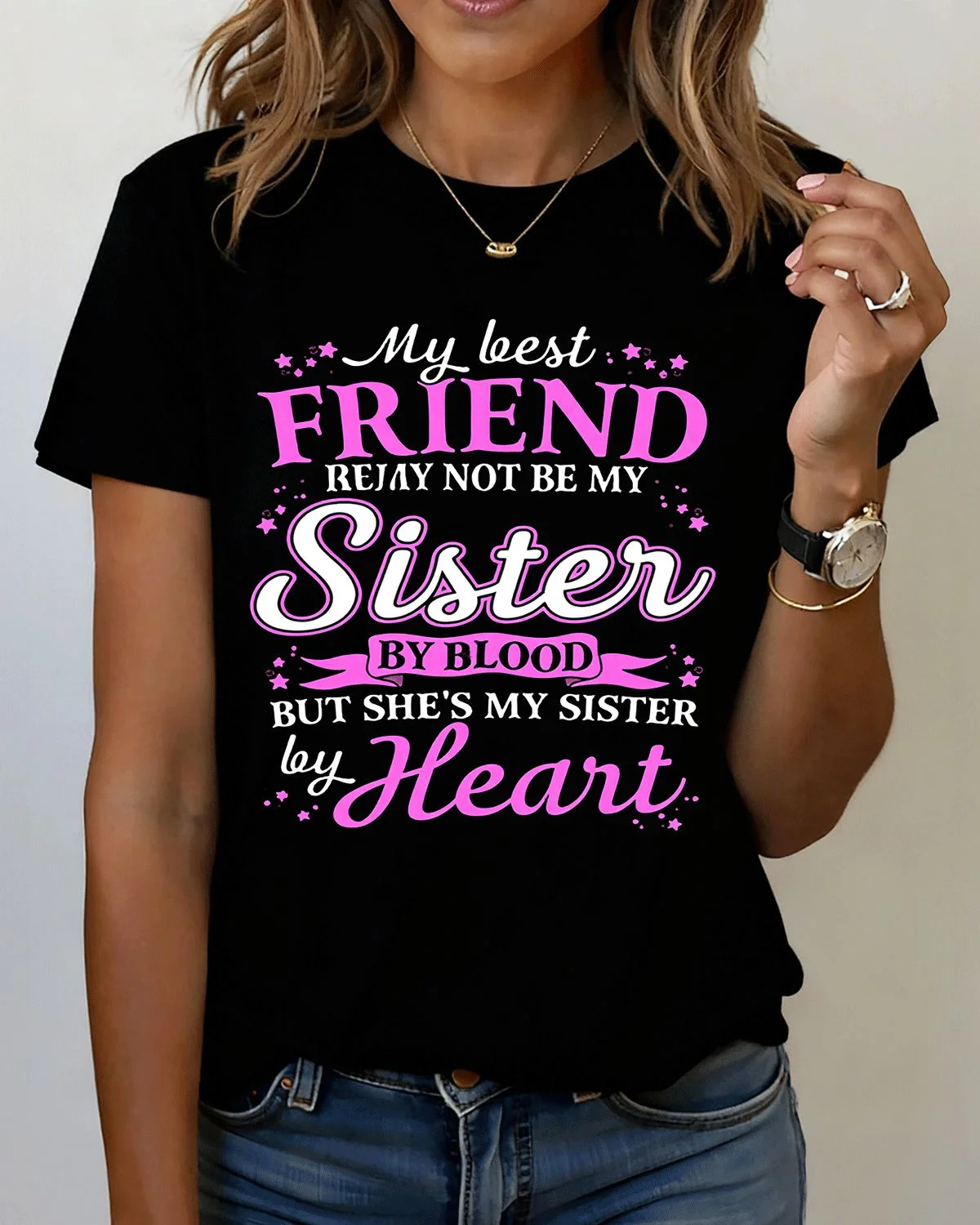 My Best Friend Sister by Heart Summer Cotton Graphic T Shirt-Casual Chic,Short Sleeve,Soft Fabric,Comfortable Fit