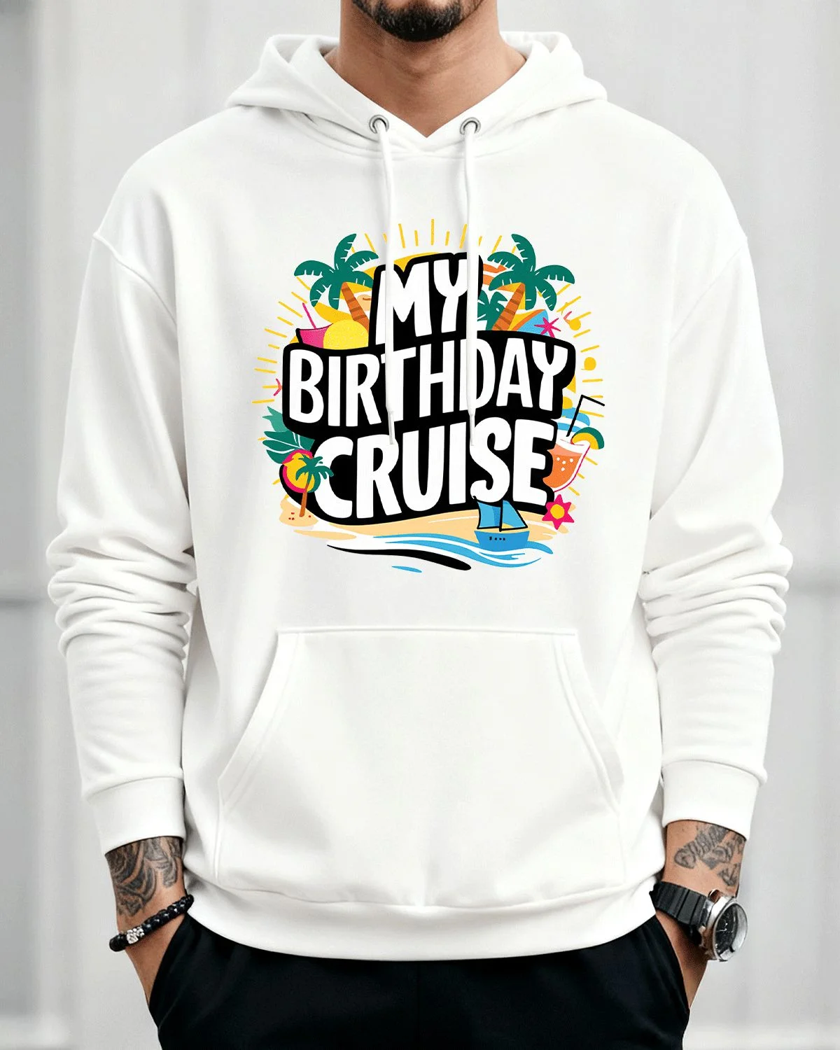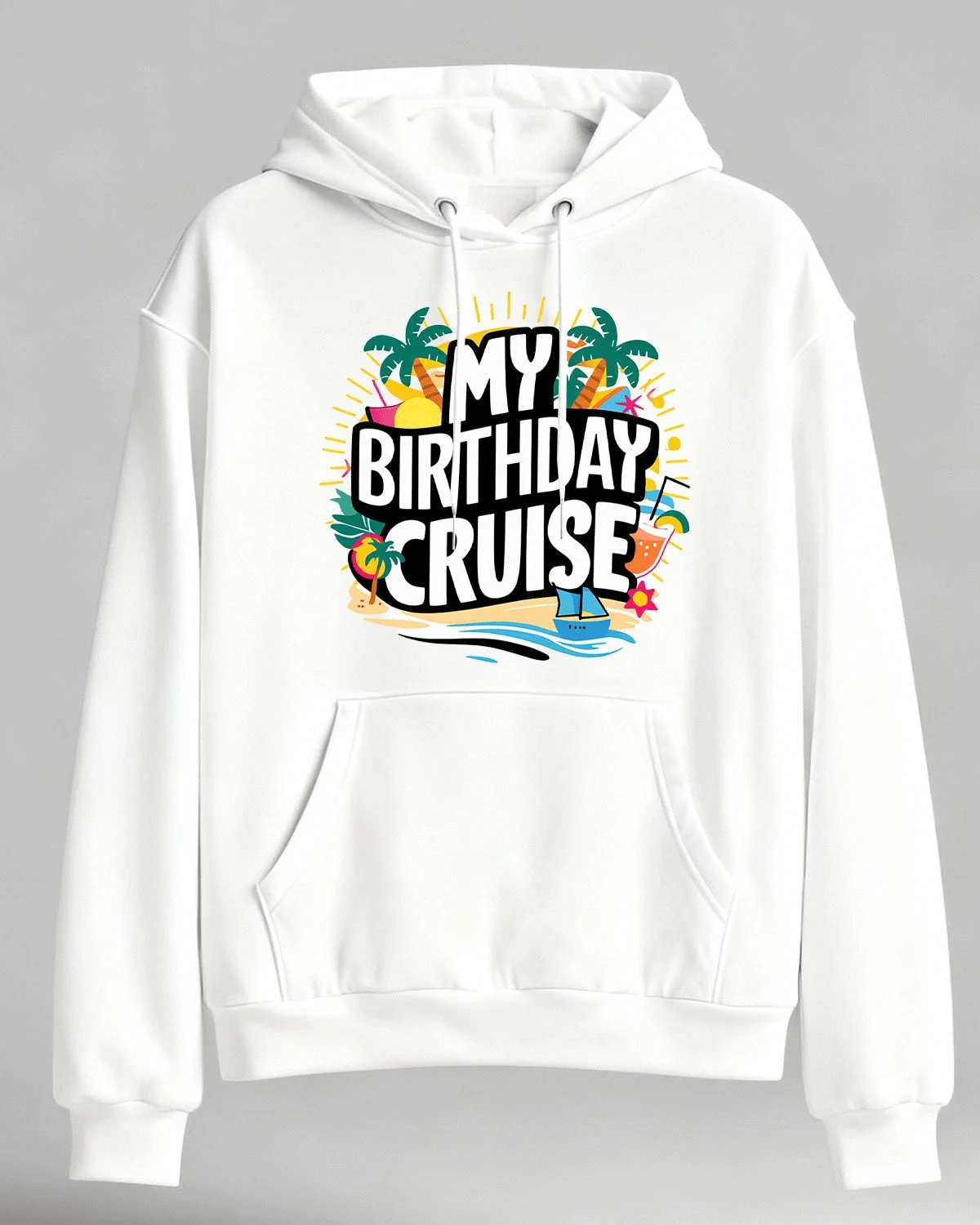 My Birthday Cruise Tropical Beach Cozy Graphic Hoodie for Men and Women - Casual Trendy, Long Sleeve, Soft Fabric, Comfortable Fit