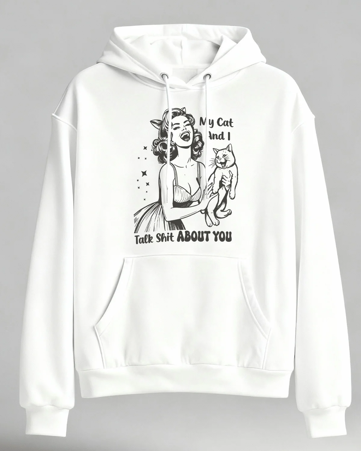 My Cat And I Gossip Cozy Cotton Graphic Hoodie-Casual Vintage,Long Sleeves,Soft Fabric,Comfortable Fit