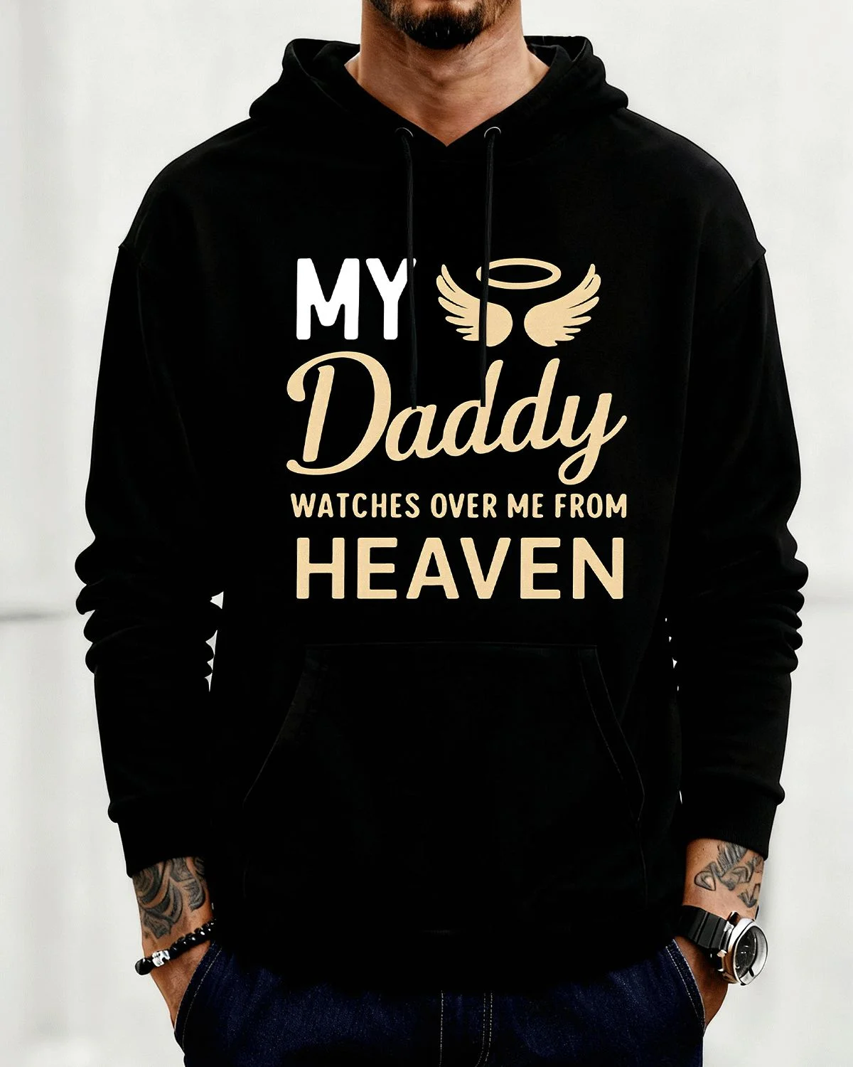 My Daddy Watches Over Me From Heaven Summer Cozy Graphic Hoodie-Casual Vintage,Long Sleeve,Soft Fabric,Comfortable Fit