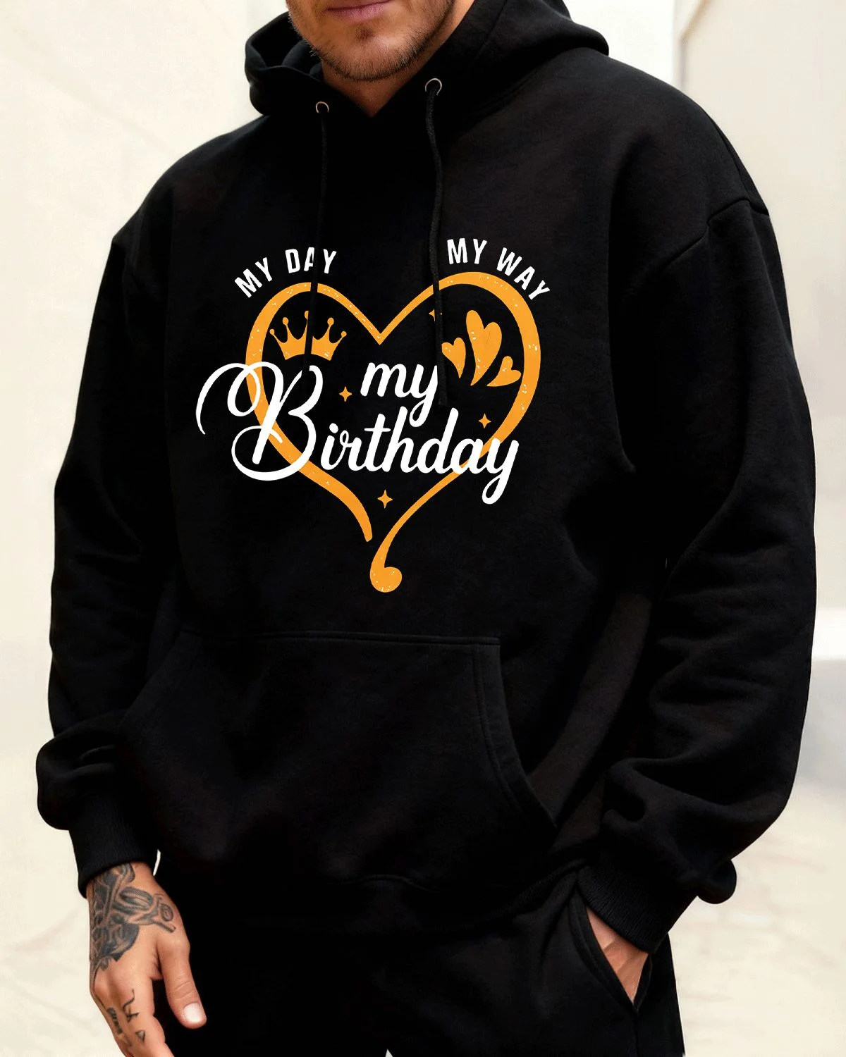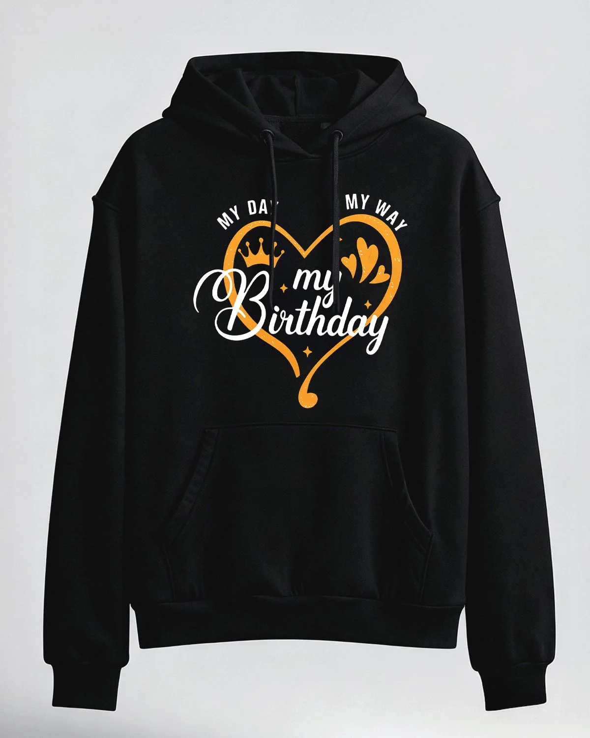 My Day My Way Heart Crown Birthday Cozy Graphic Hoodie for Men and Women - Casual Chic, Long Sleeve, Soft Fabric, Comfortable Fit