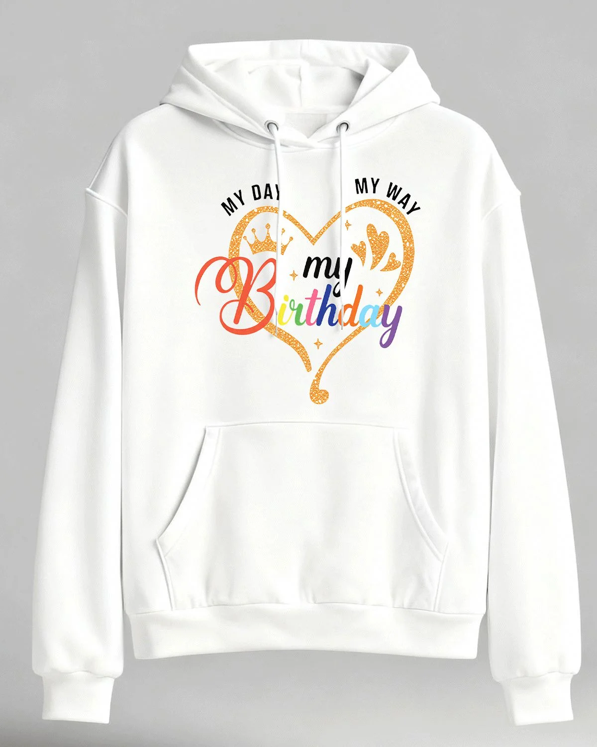 My Day My Way Heart Crown My Birthday Cozy Graphic Hoodie for Men and Women - Casual Chic, Long Sleeve, Soft Fabric, Comfortable Fit