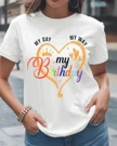 My Day My Way Heart Crown My Birthday Summer Cotton Graphic T Shirt - Casual Chic, Short Sleeve, Soft Fabric, Comfortable Fit