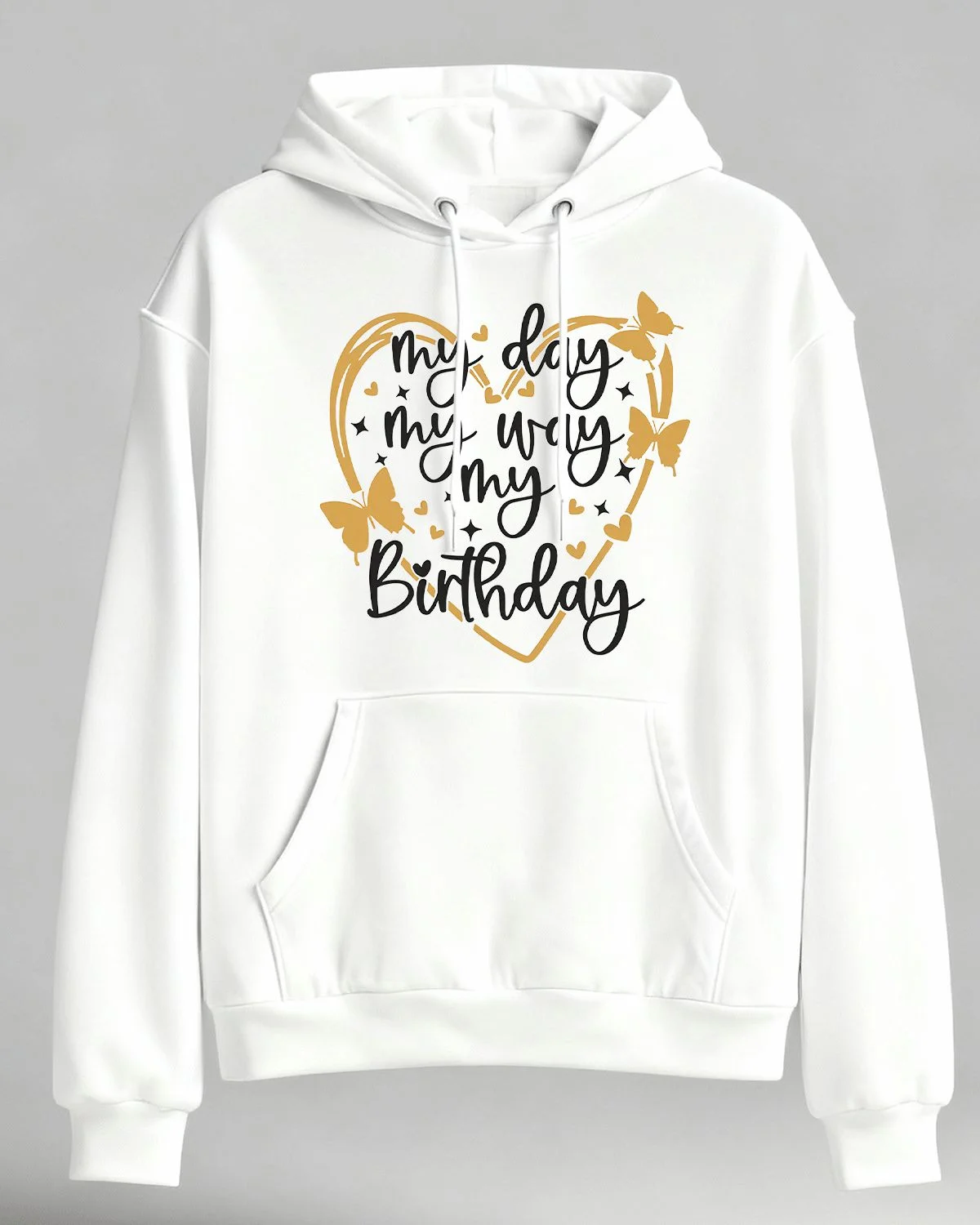 My Day My Way My Birthday Heart and Butterflies Cozy Graphic Hoodie for Men and Women - Casual Artistic, Long Sleeve, Soft Fabric, Comfortable Fit