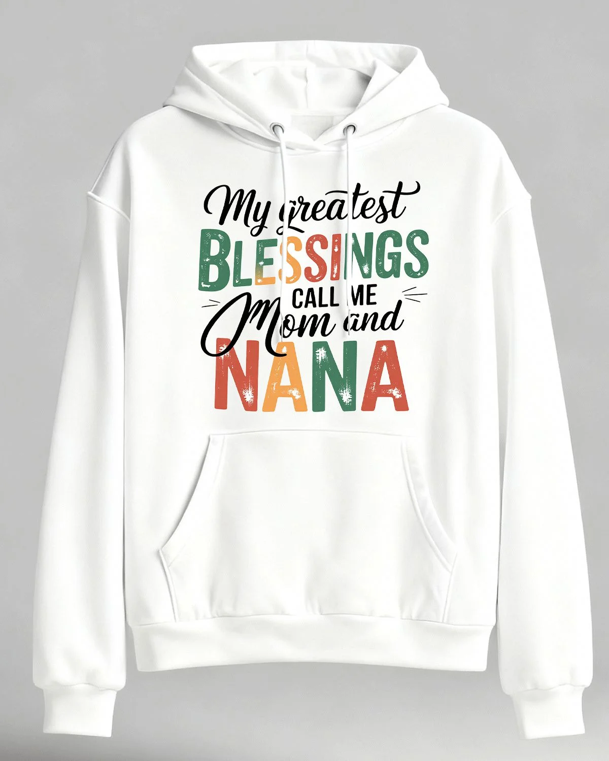 My Greatest Blessings Call Me Mom and Nana Cozy Graphic Hoodie for Men and Women - Casual Vintage, Long Sleeve, Soft Fabric, Comfortable Fit