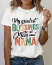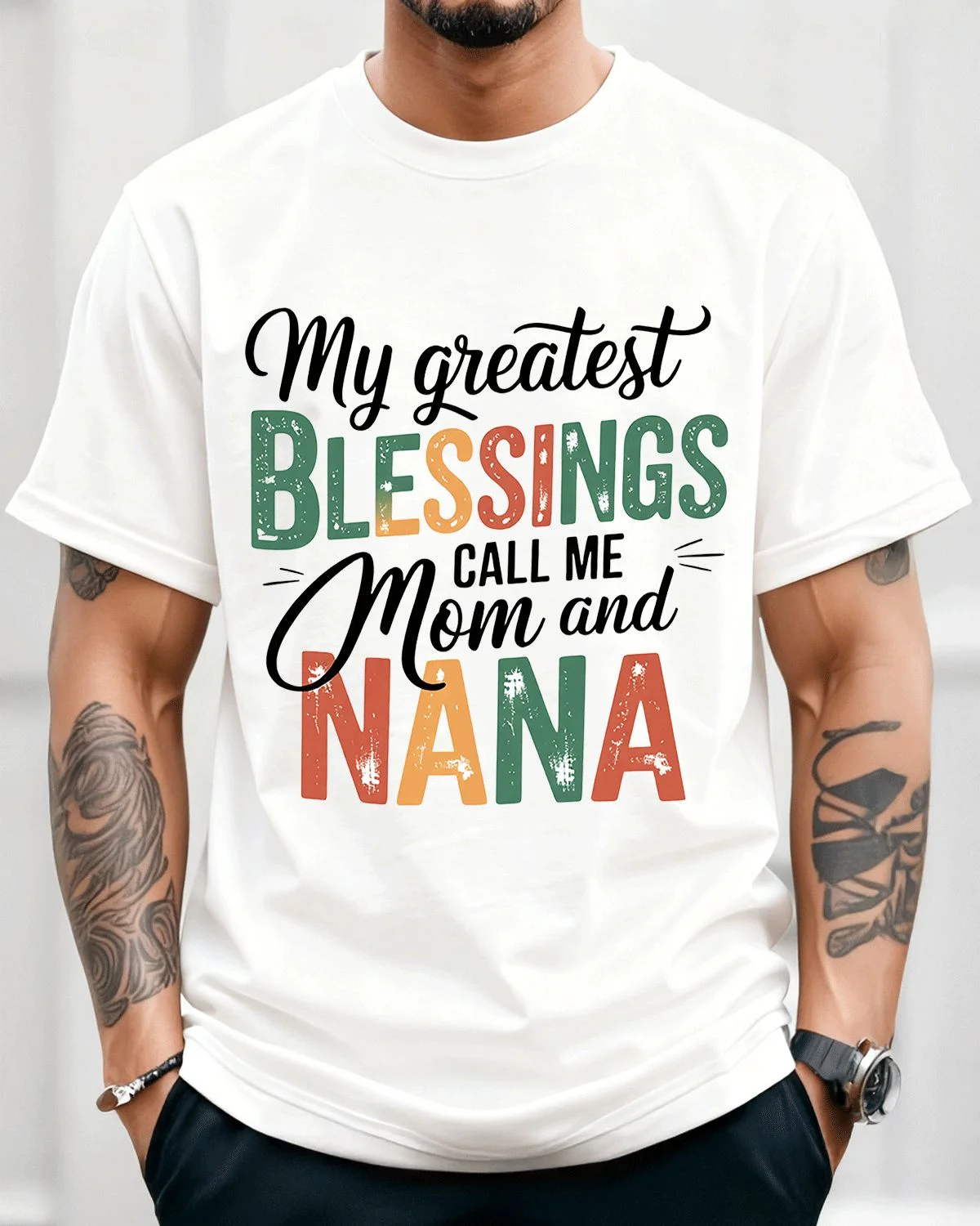 My Greatest Blessings Call Me Mom and Nana Summer Cotton Graphic T Shirt - Casual Vintage,Short Sleeve,Soft Fabric,Comfortable Fit