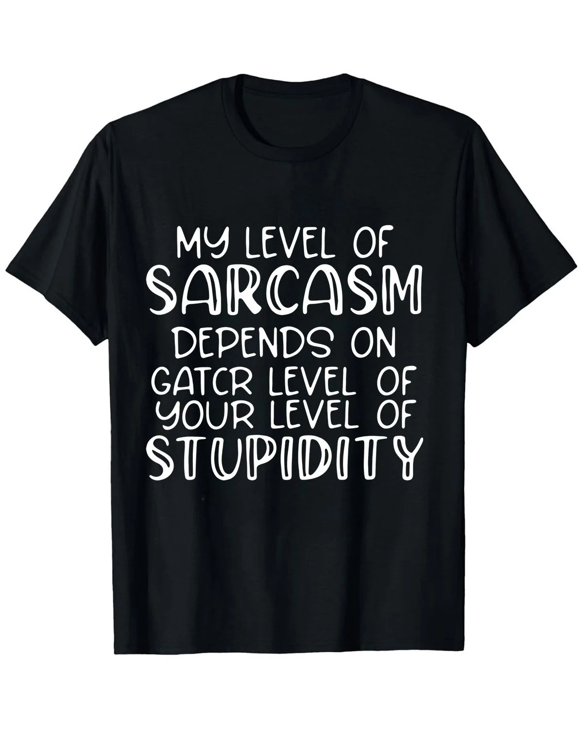 My Level of Sarcasm Depends on Your Stupidity Summer Cotton Graphic T Shirt - Funny Casual,Short Sleeve,Soft Fabric,Comfortable Fit
