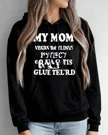 My Mom Family Glue Cozy Graphic Hoodie for Men and Women - Casual Vintage, Long Sleeve, Soft Fabric, Comfortable Fit