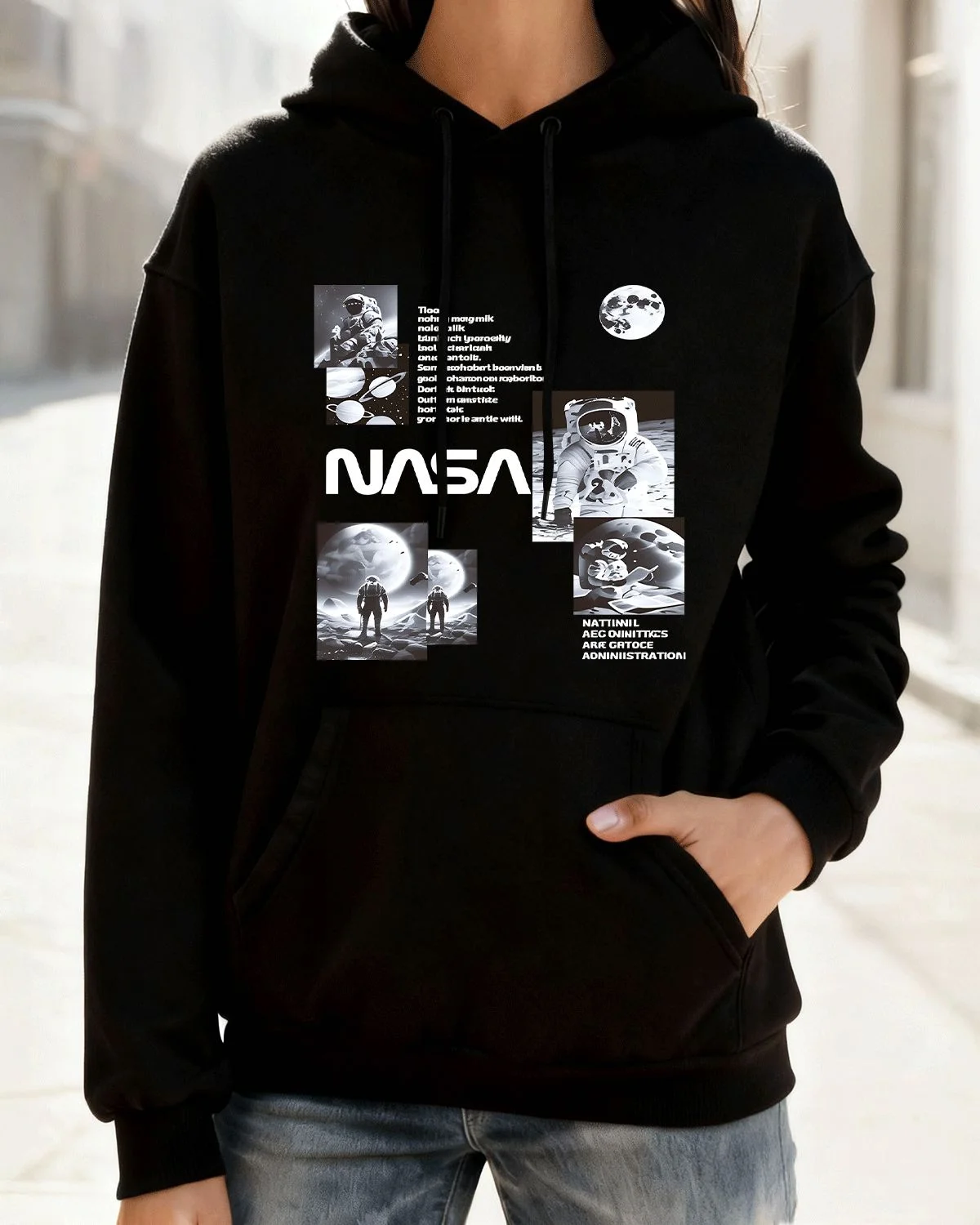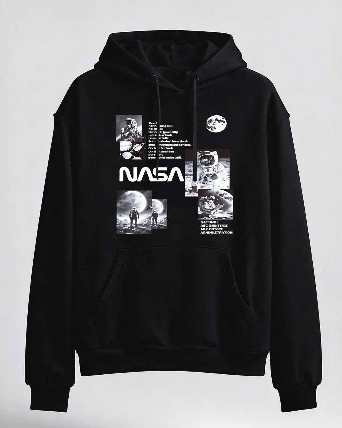 NASA Astronauts on Moon and Planets Cozy Cotton Graphic Hoodie with Pocket-Vintage Retro,Long Sleeve,Soft Fabric,Comfortable Fit