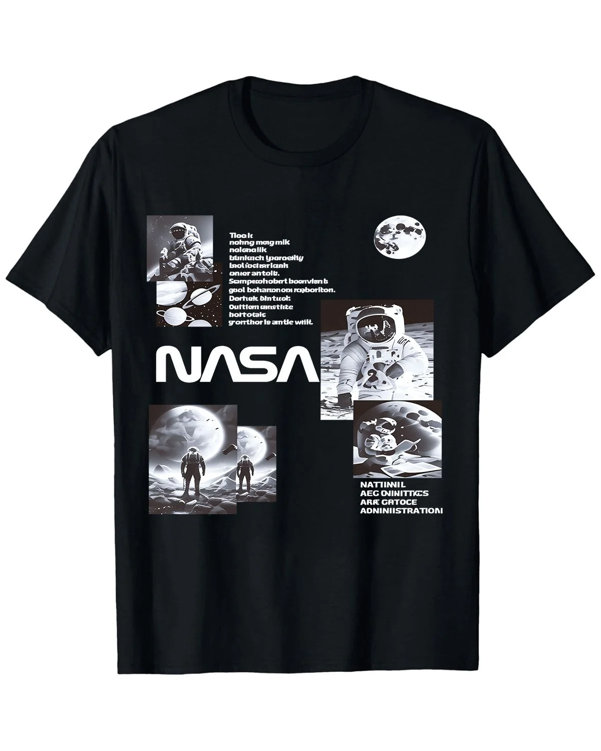 NASA Astronauts on Moon and Planets Summer Cotton Graphic T Shirt - Vintage Retro,Short Sleeve,Soft Fabric,Comfortable Fit