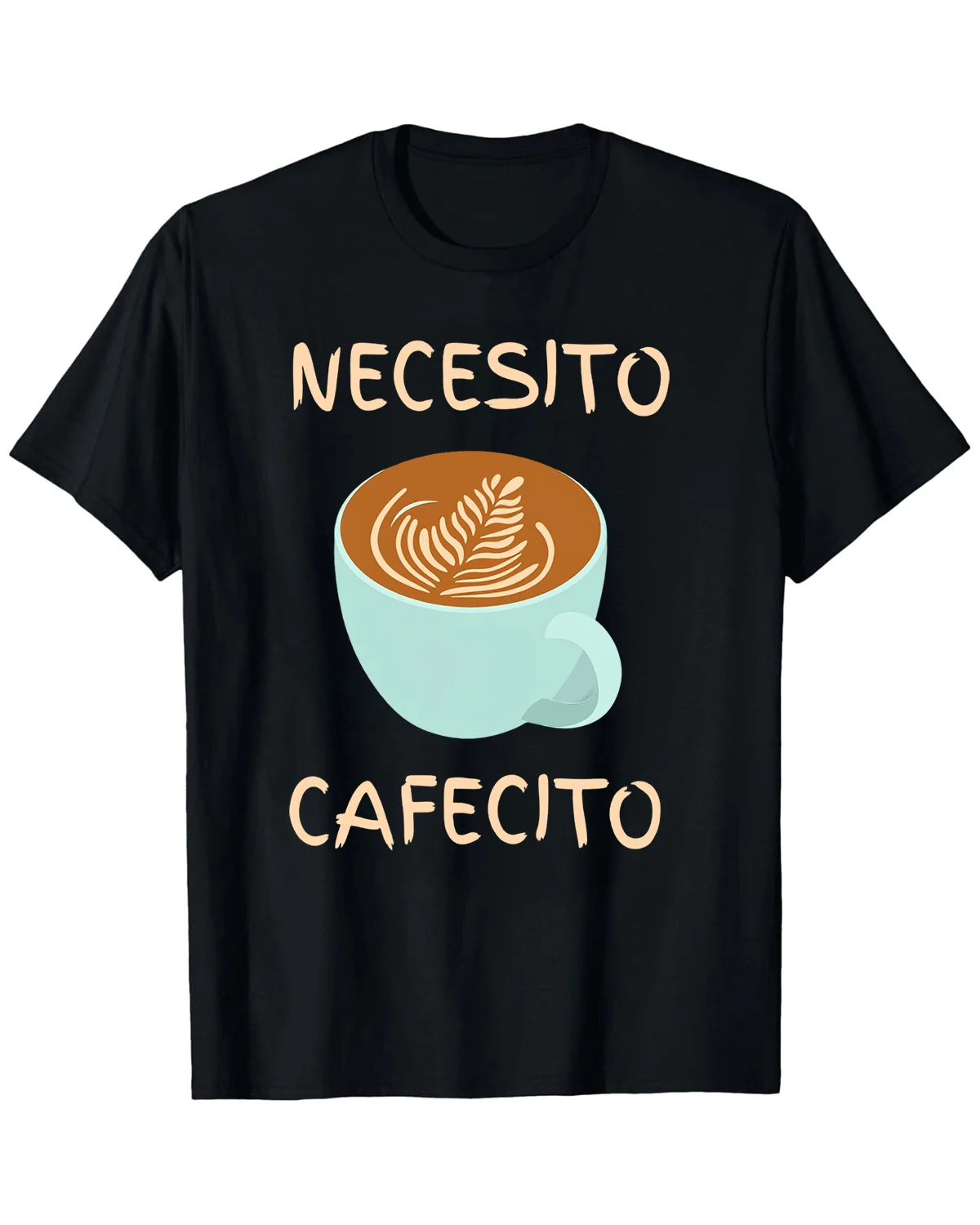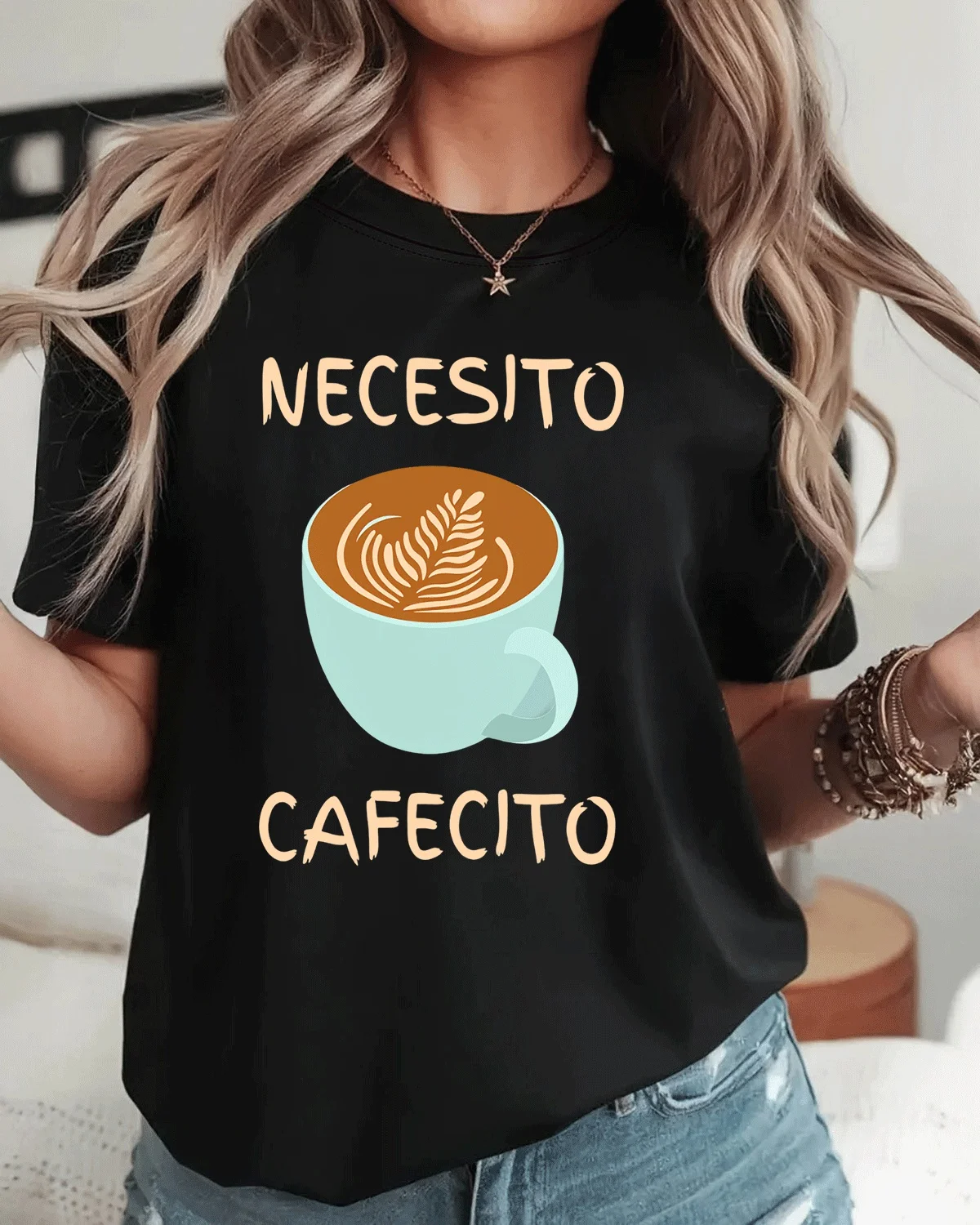Necesito Cafecito Summer Cotton Graphic T Shirt-Casual Trendy,Short Sleeve,Soft Fabric,Comfortable Fit