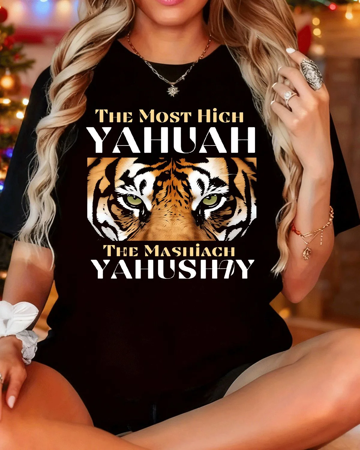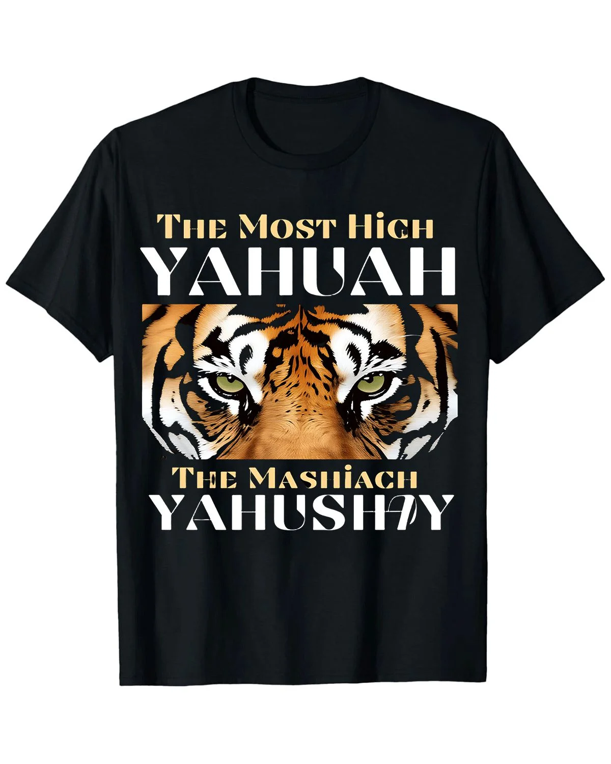 New Year Tiger Yahuah Yahushay Summer Cotton Graphic T Shirt - Artistic Vintage, Short Sleeve, Soft Fabric, Comfortable Fit