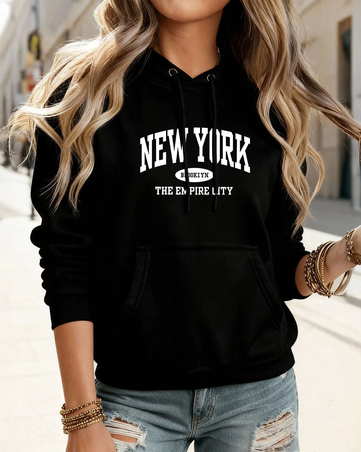 New York Brooklyn The Empire City Cozy Cotton Graphic Hoodie with Pocket-Vintage Urban,Long Sleeve,Soft Fabric,Comfortable Fit