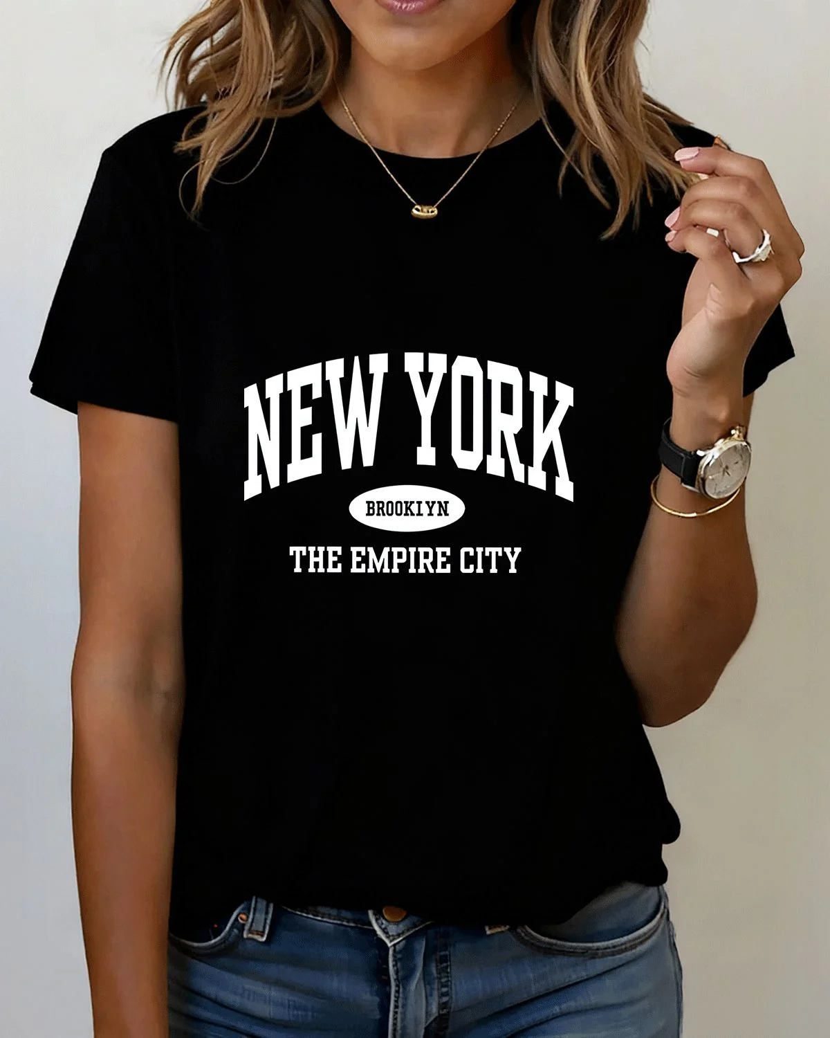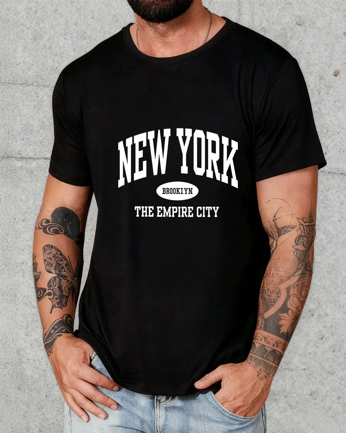 New York Brooklyn The Empire City Summer Cotton Graphic T Shirt - Vintage Urban,Short Sleeve,Soft Fabric,Comfortable Fit