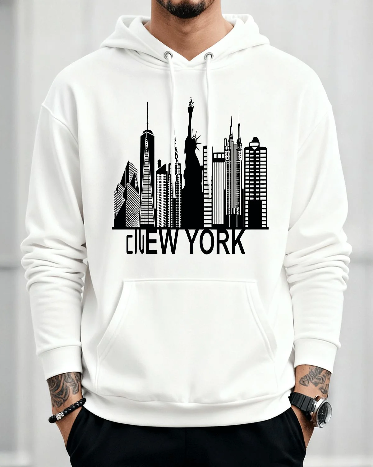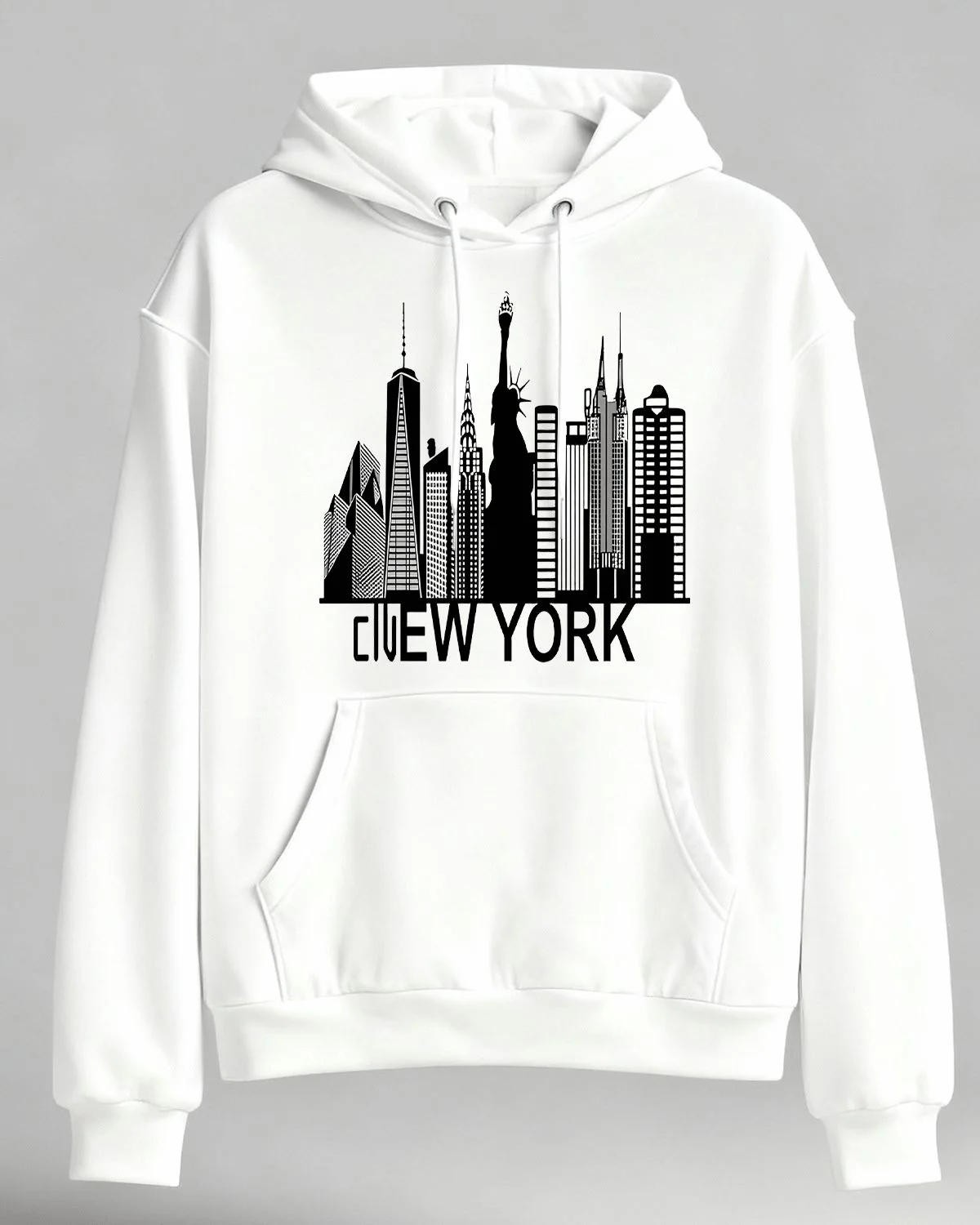 New York City Skyline Summer Cozy Graphic Hoodie - Casual Urban, Long Sleeve, Soft Fabric, Comfortable Fit