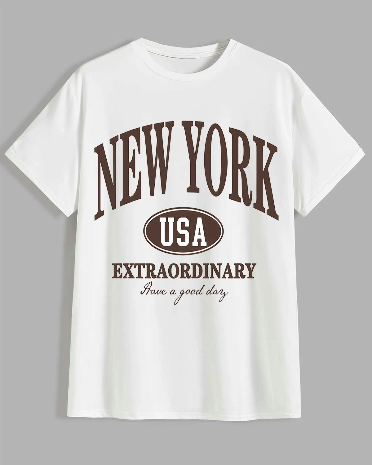 New York USA Extraordinary Have a Good Day Summer Cotton Graphic T Shirt - Casual Vintage, Short Sleeve, Soft Fabric, Comfortable Fit