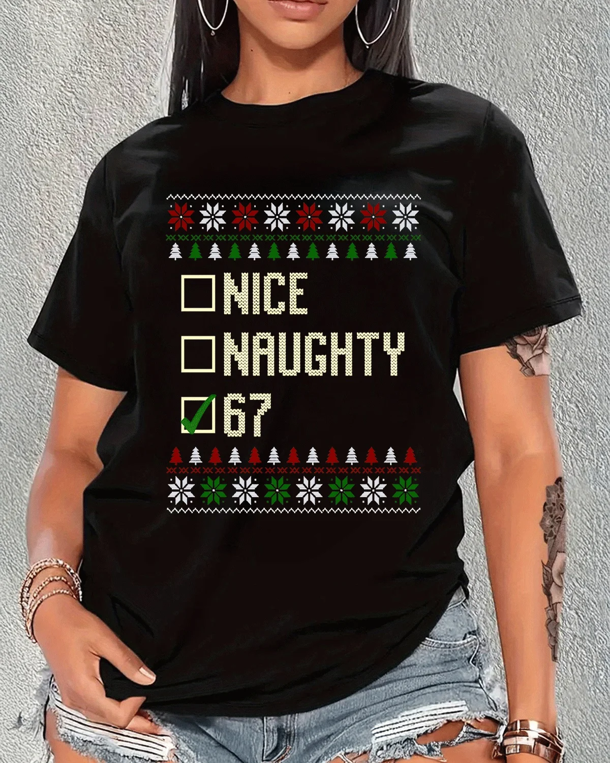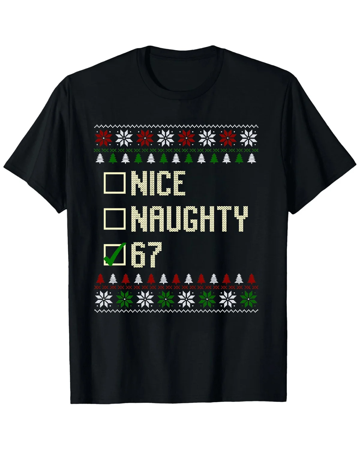Nice Naughty 67 Christmas Summer Cotton Graphic T Shirt-Casual Funny,Short Sleeve,Soft Fabric,Comfortable Fit