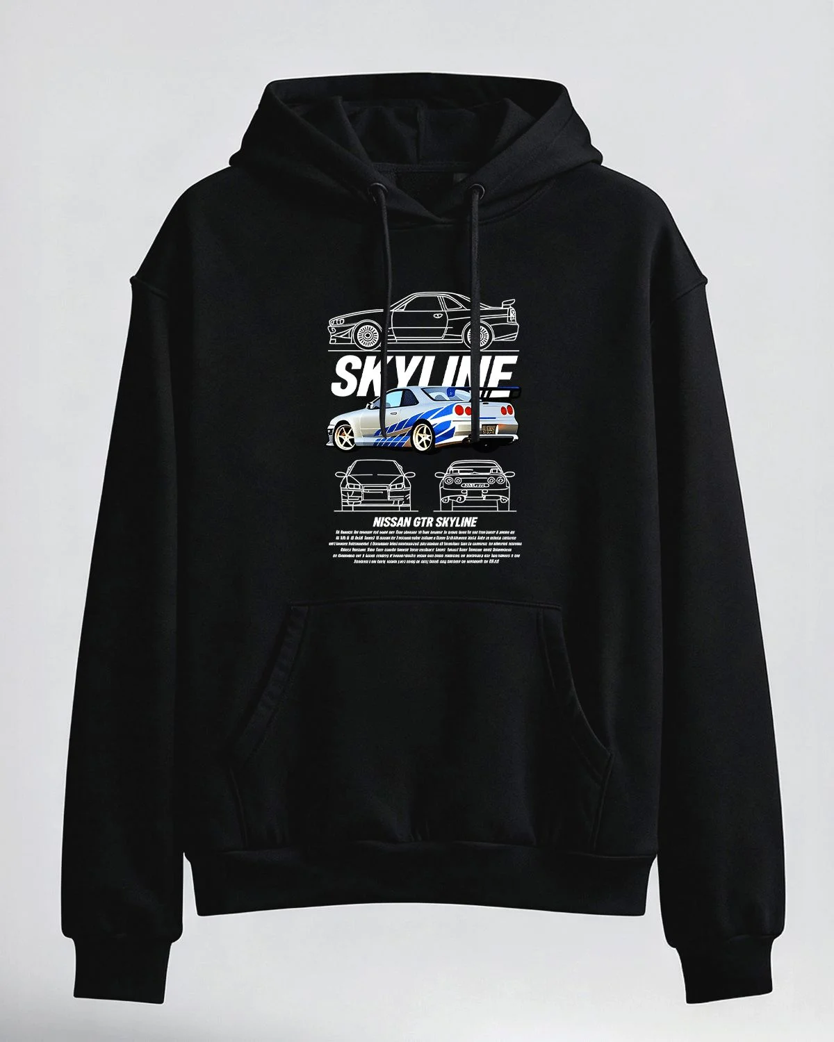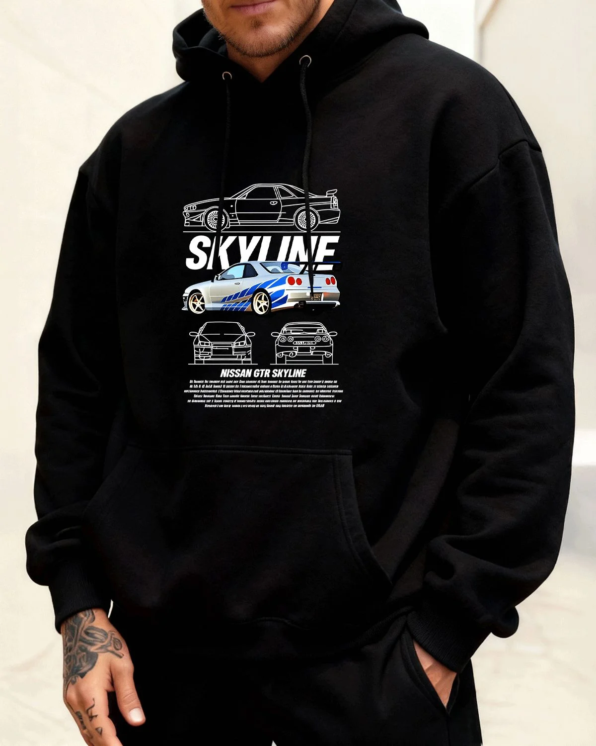 Nissan GTR Skyline Sports Car Cozy Cotton Graphic Hoodie with Pocket-Retro Street,Long Sleeve,Soft Fabric,Comfortable Fit