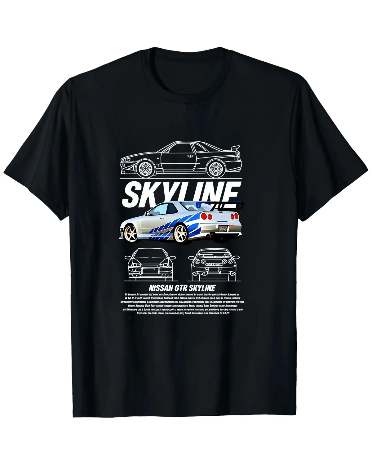 Nissan GTR Skyline Sports Car Summer Cotton Graphic T Shirt - Retro Street,Short Sleeve,Soft Fabric,Comfortable Fit