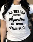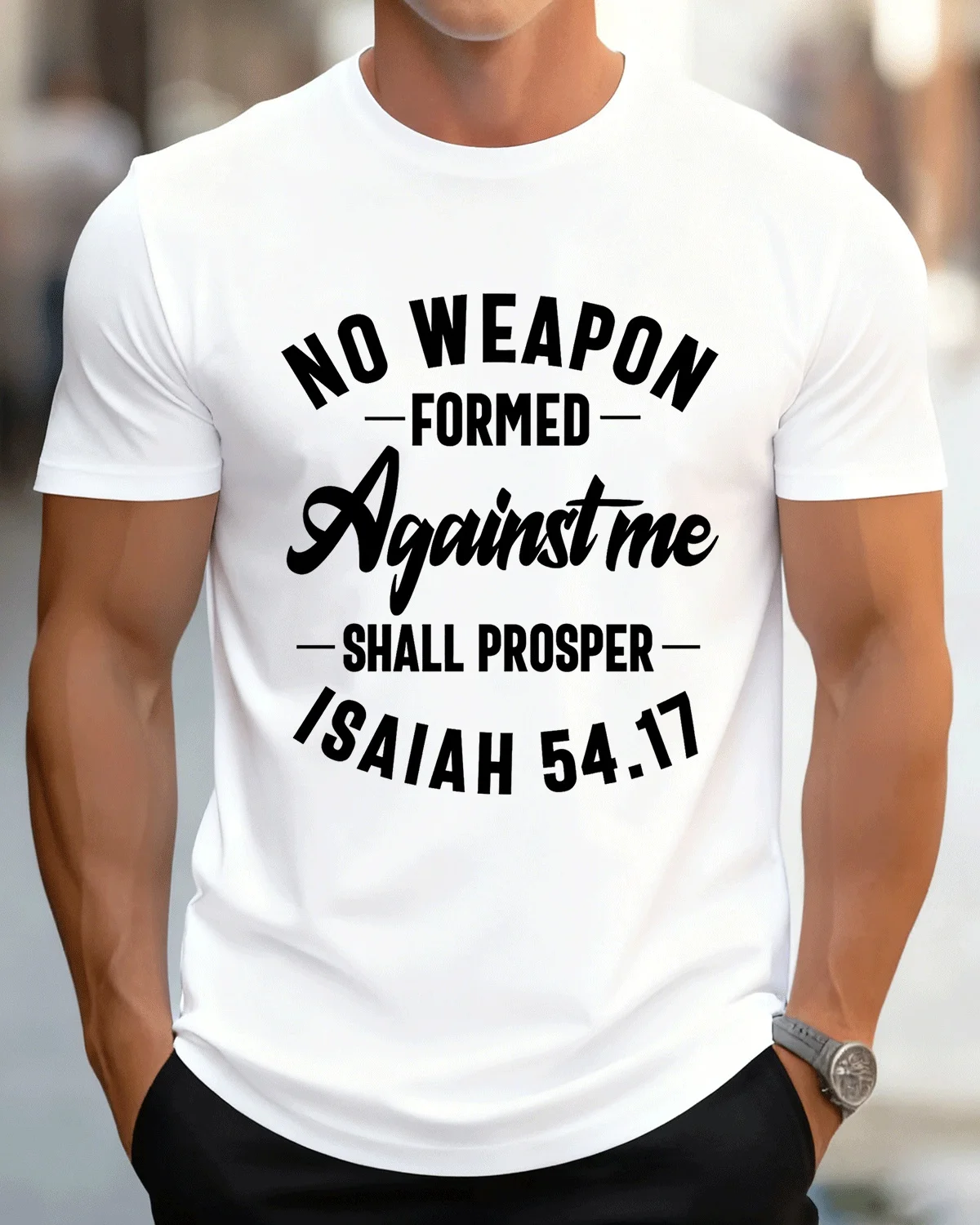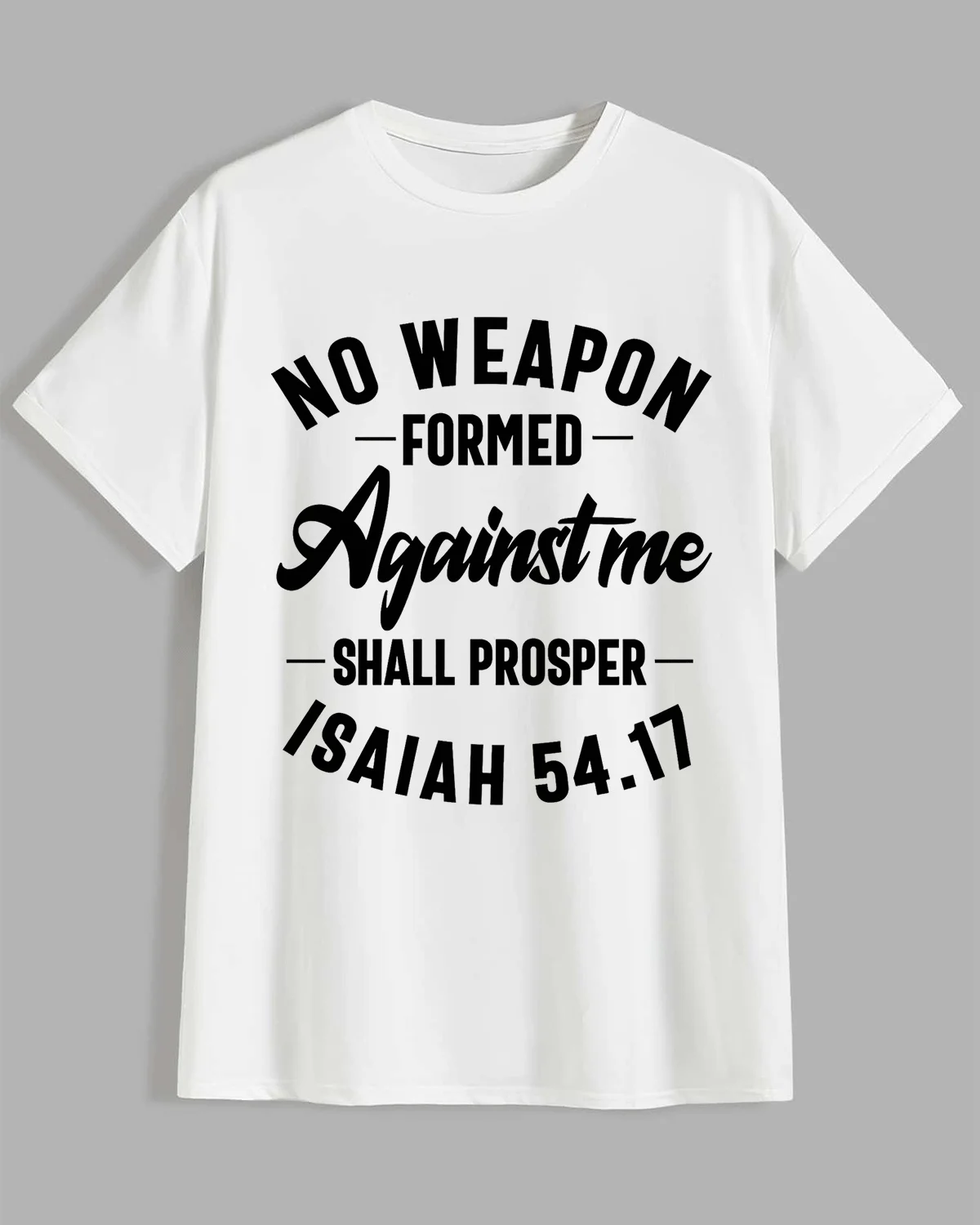 No Weapon Formed Against Me Isaiah 54.17 Summer Cotton Graphic T Shirt-Casual Vintage,Short Sleeve,Soft Fabric,Comfortable Fit