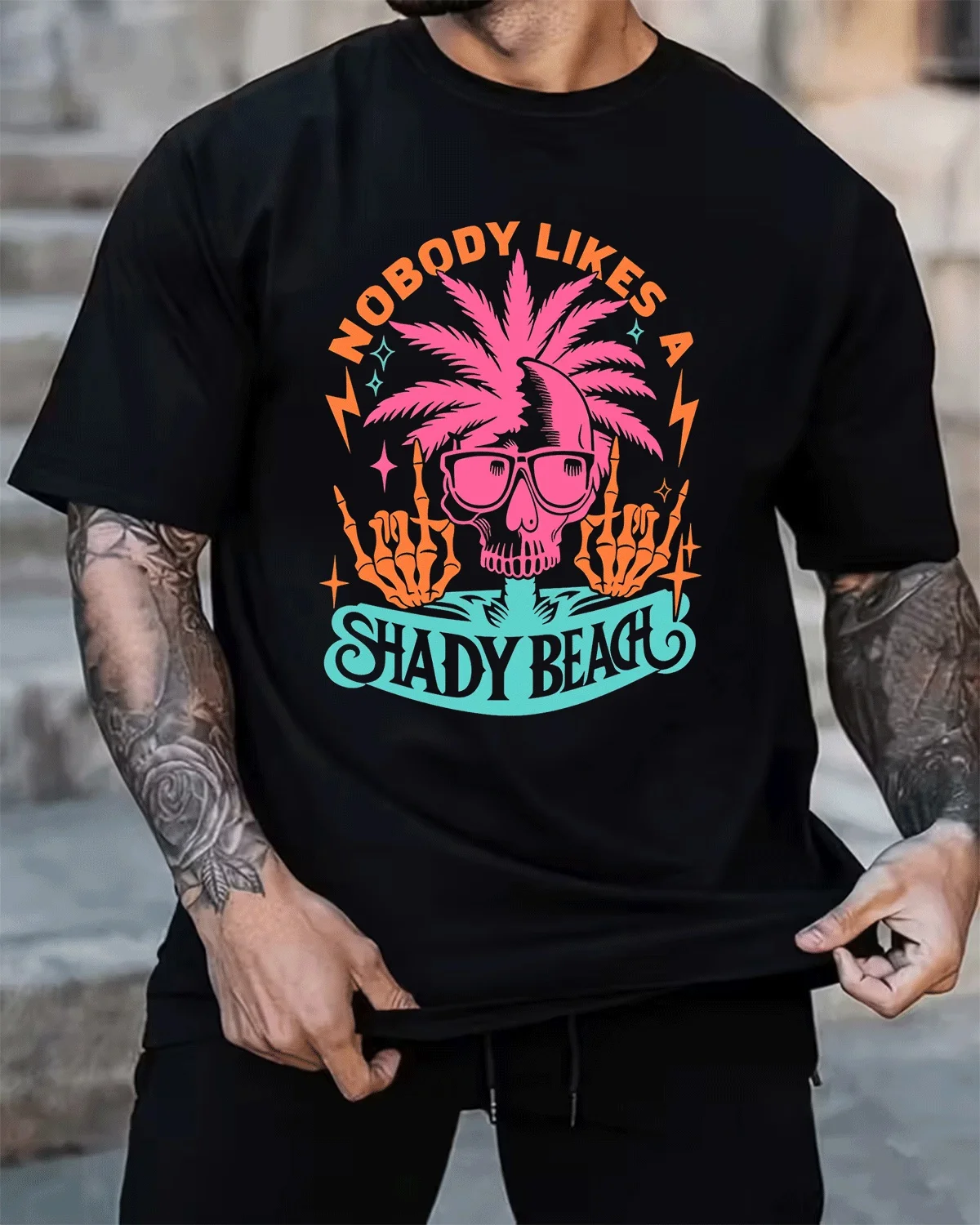 Nobody Likes a Shady Beach Summer Cotton Graphic T Shirt-Casual Funny,Short Sleeve,Soft Fabric,Comfortable Fit