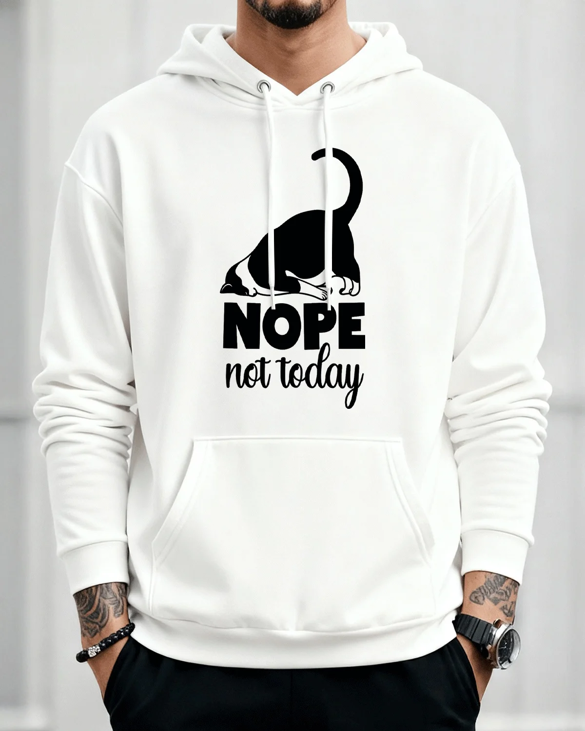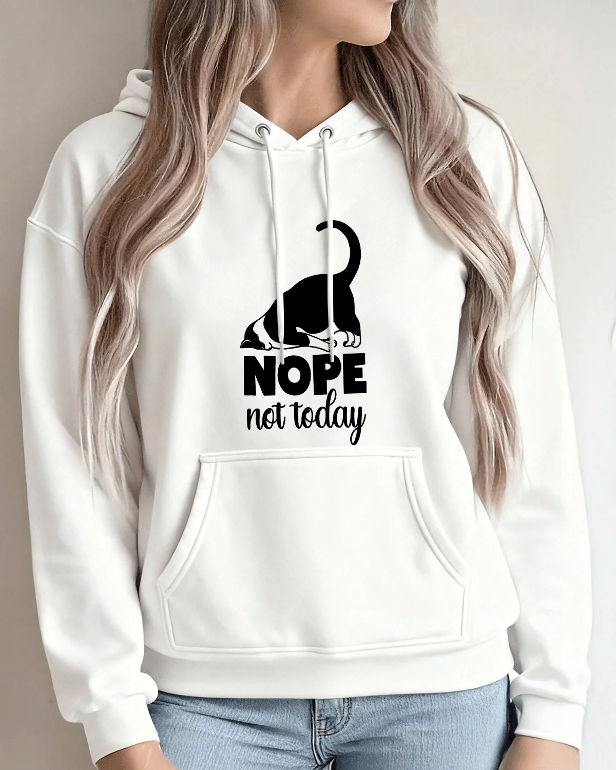 Nope Not Today Lazy Cat Cozy Cotton Graphic Hoodie-Casual Funny,Long Sleeves,Soft Fabric,Comfortable Fit
