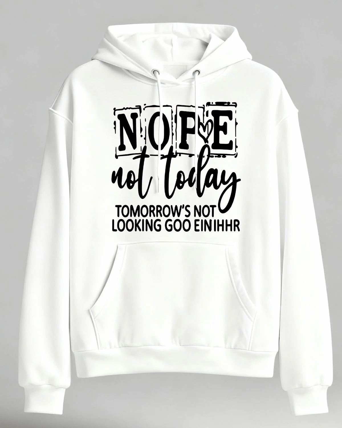 Nope Not Today Tomorrow's Not Looking Good Cozy Graphic Hoodie for Men and Women - Casual Funny, Long Sleeve, Soft Fabric, Comfortable Fit