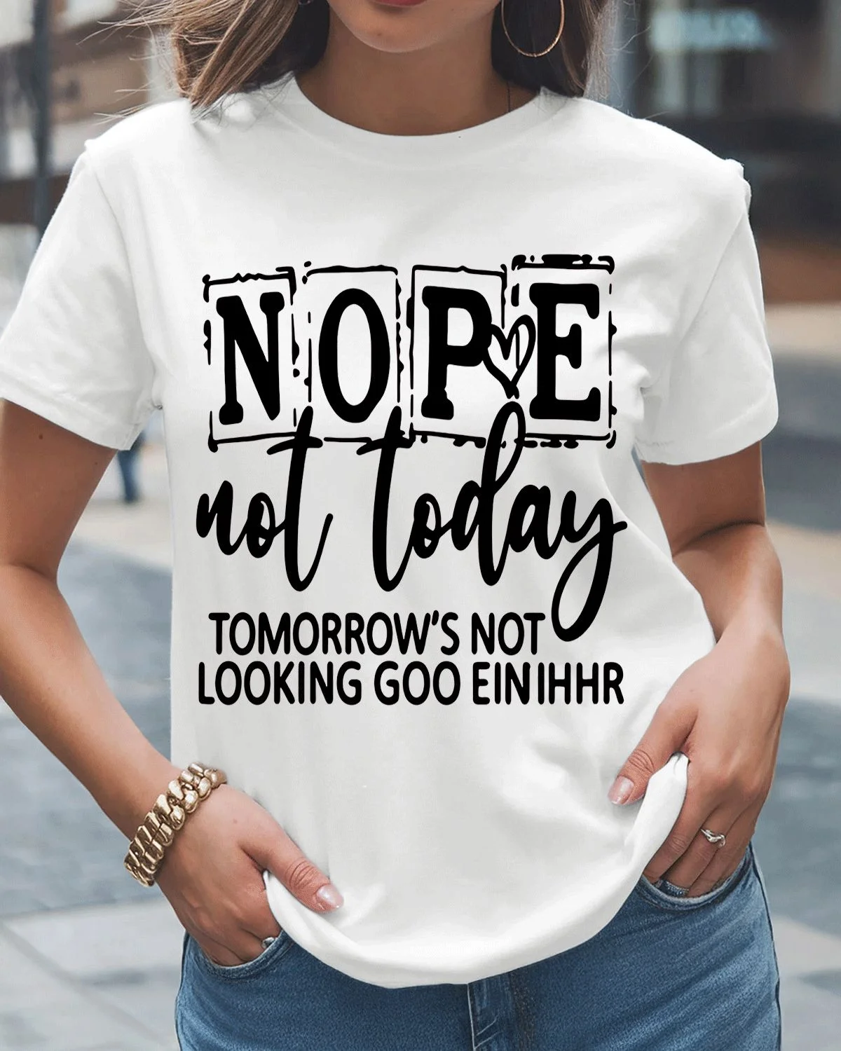 Nope Not Today Tomorrow's Not Looking Good Summer Cotton Graphic T Shirt - Casual Funny, Short Sleeve, Soft Fabric, Comfortable Fit