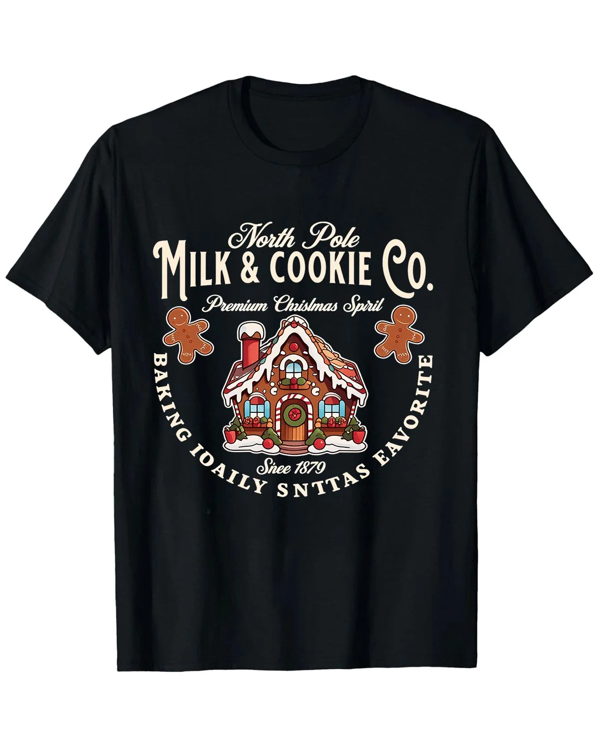 North Pole Milk and Cookie Co Christmas Summer Cotton Graphic T Shirt - Vintage Classic,Short Sleeve,Soft Fabric,Comfortable Fit