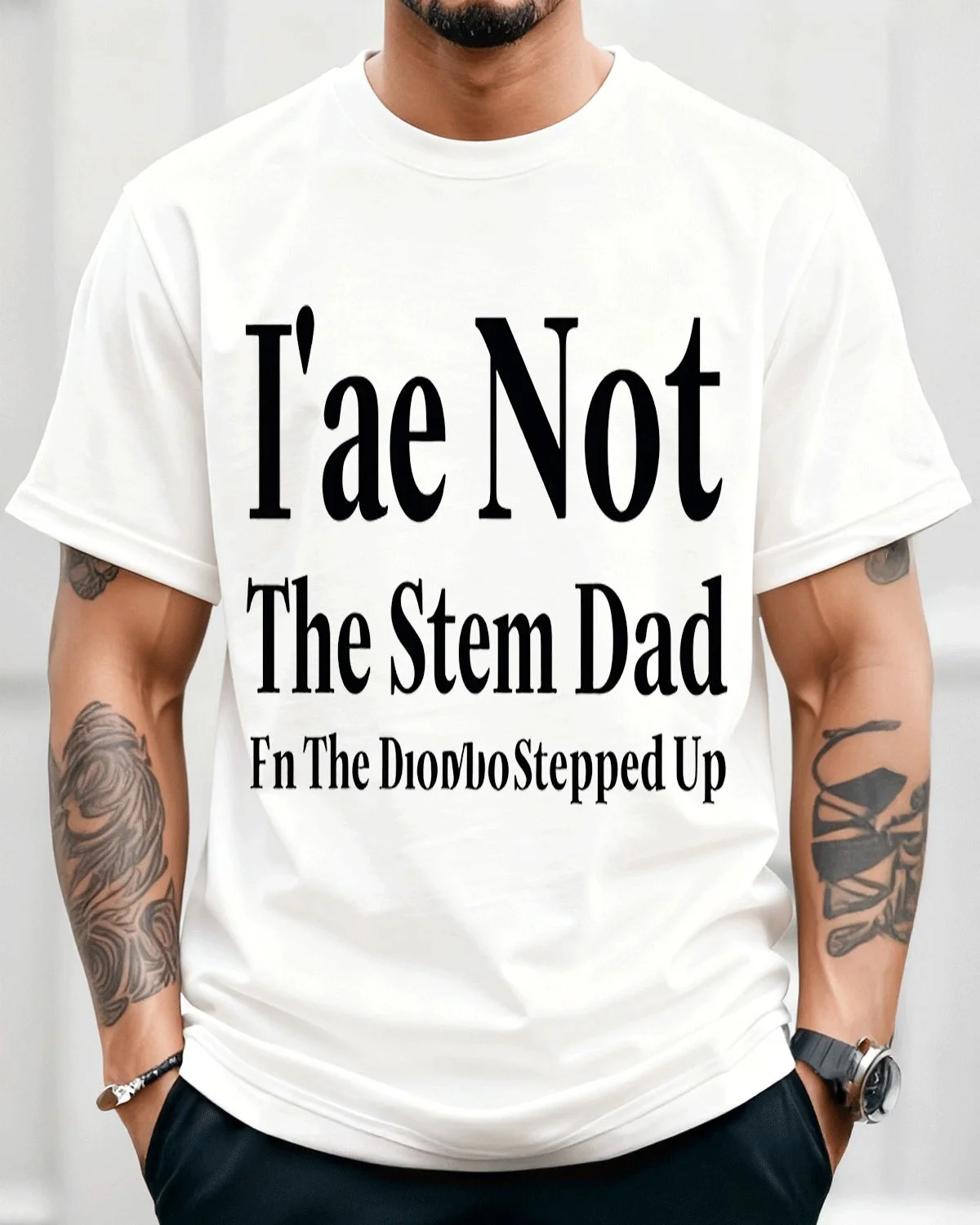 Not The Step Dad Stepped Up Summer Cotton Graphic T Shirt - Casual Vintage, Short Sleeve, Soft Fabric, Comfortable Fit