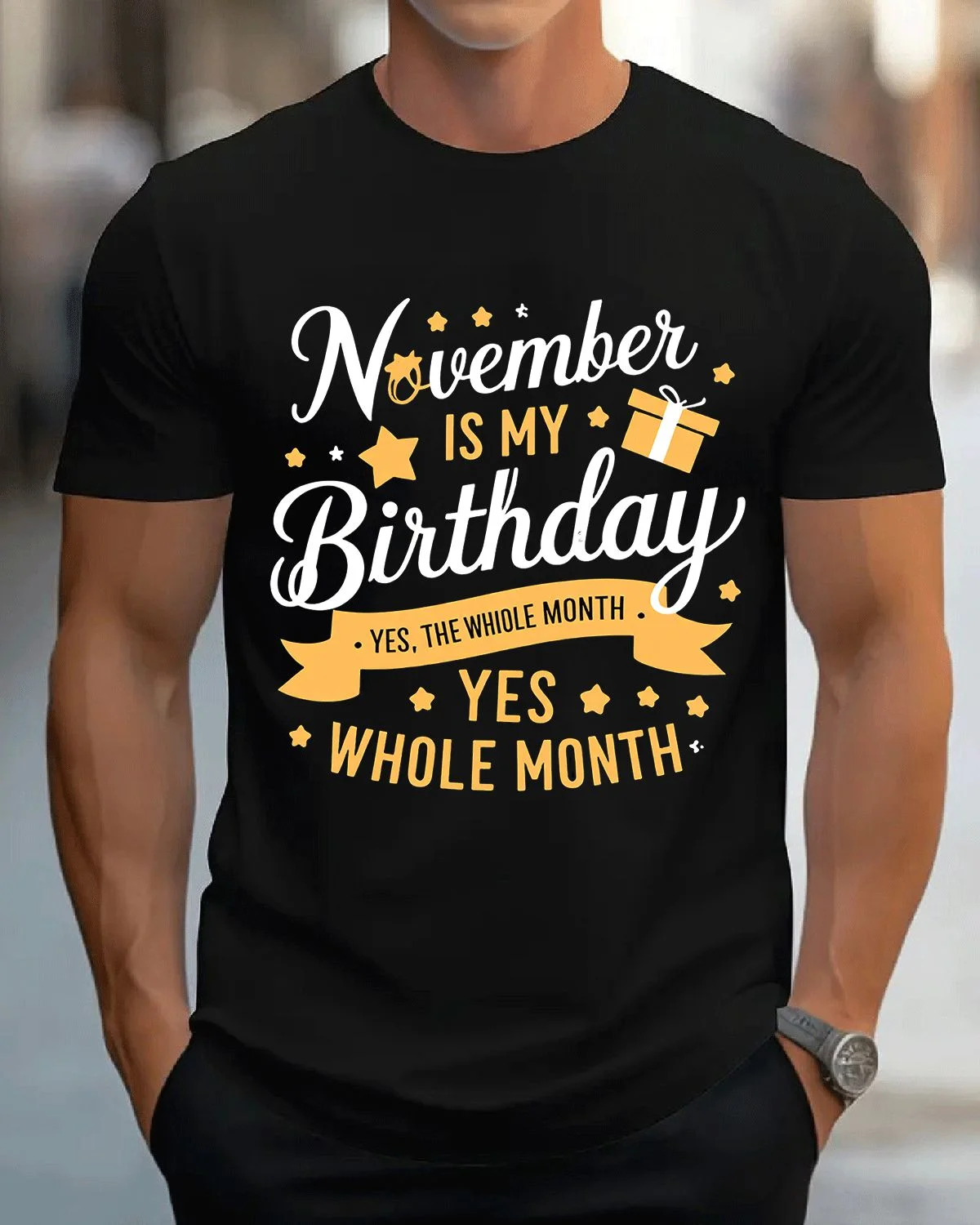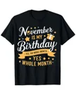 November Is My Birthday Whole Month Summer Cotton Graphic T Shirt - Casual Funny, Short Sleeve, Soft Fabric, Comfortable Fit