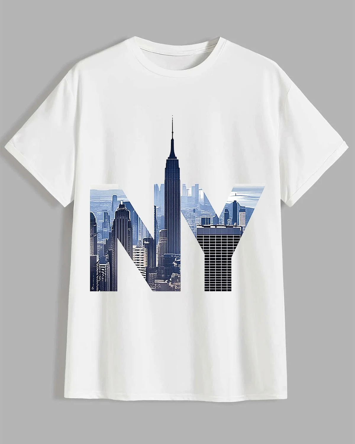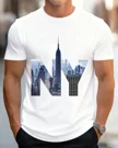 NY Skyline Summer Cotton Graphic T Shirt - Urban Vintage, Short Sleeve, Soft Fabric, Comfortable Fit