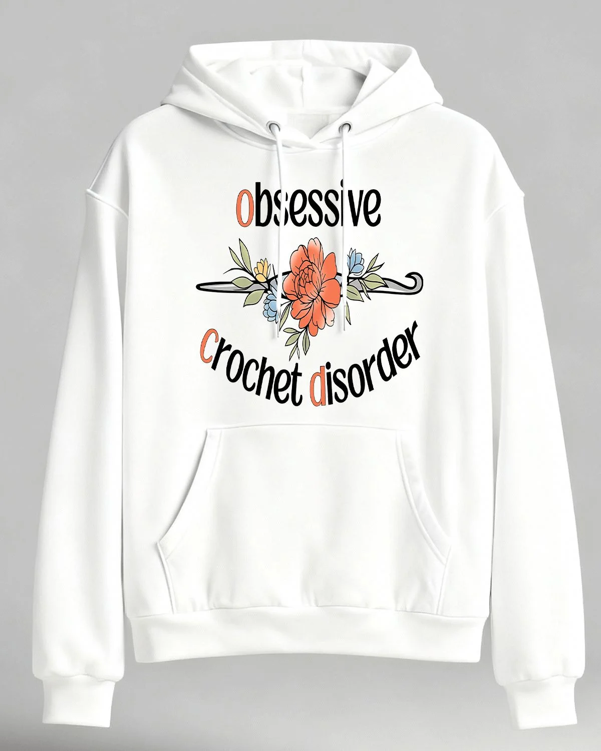 Obsessive Crochet Disorder Floral Summer Cozy Graphic Hoodie - Casual Artistic, Long Sleeve, Soft Fabric, Comfortable Fit