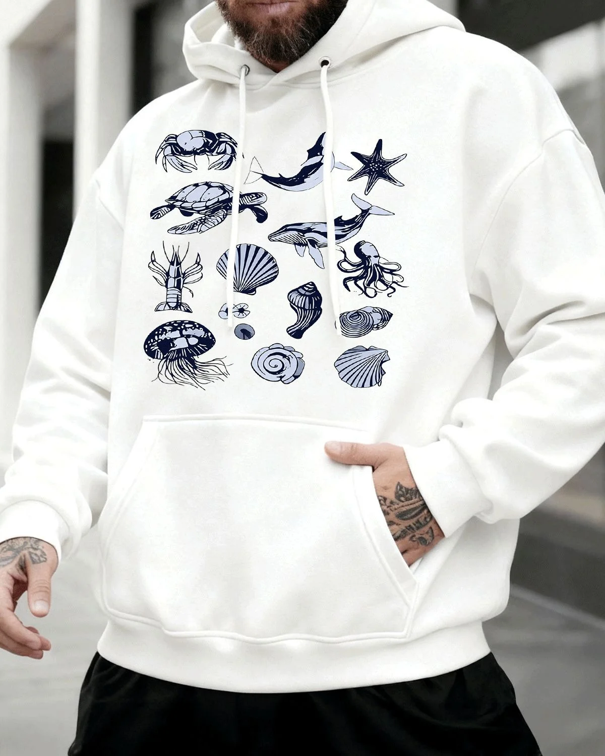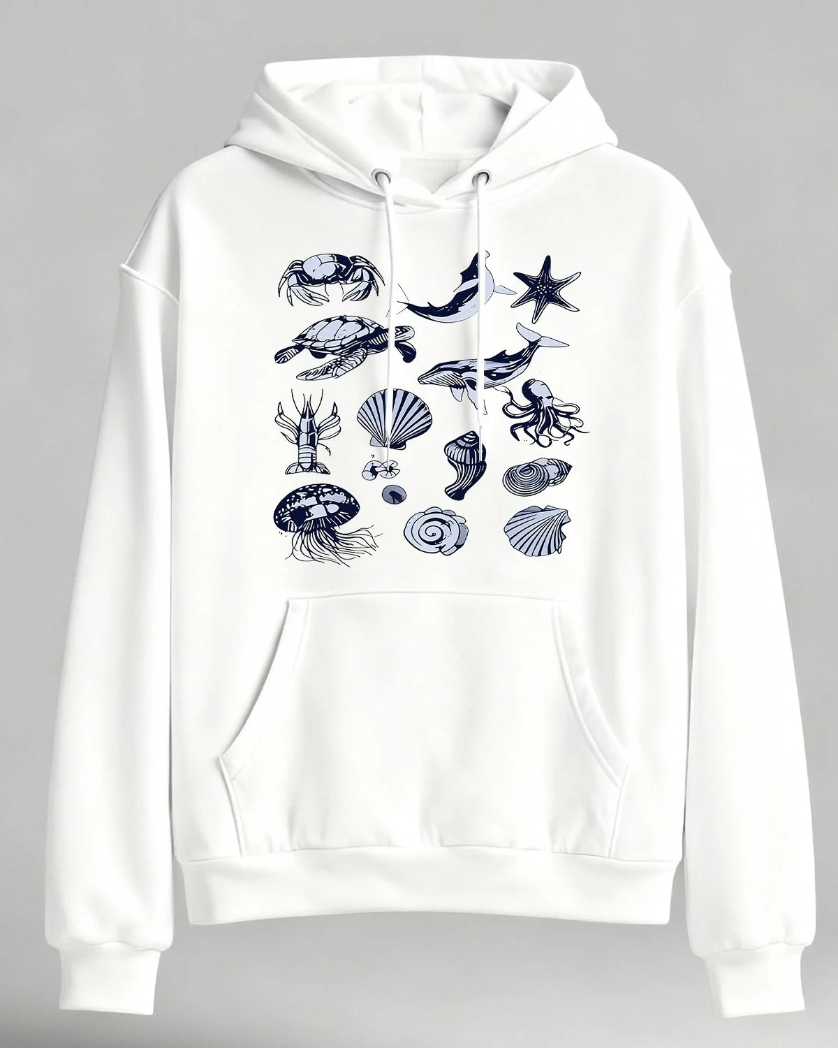 Ocean Sea Life Creatures Cozy Graphic Hoodie for Men and Women - Casual Artistic, Long Sleeve, Soft Fabric, Comfortable Fit
