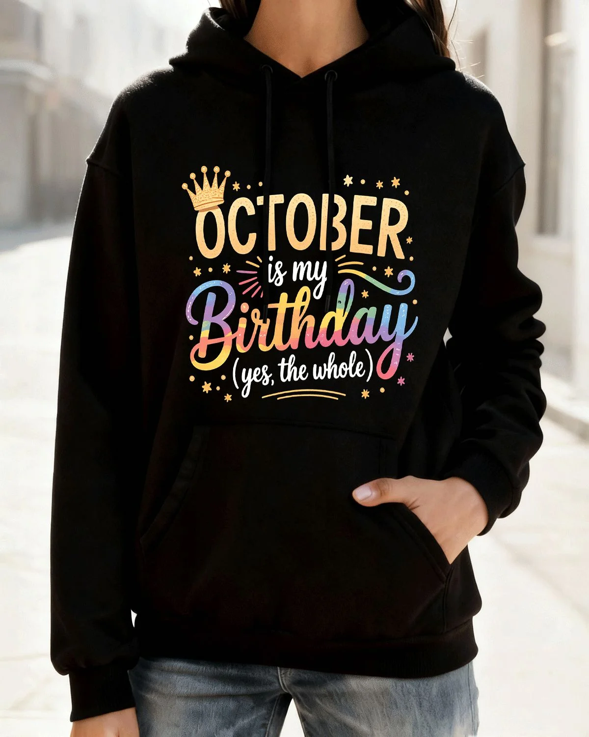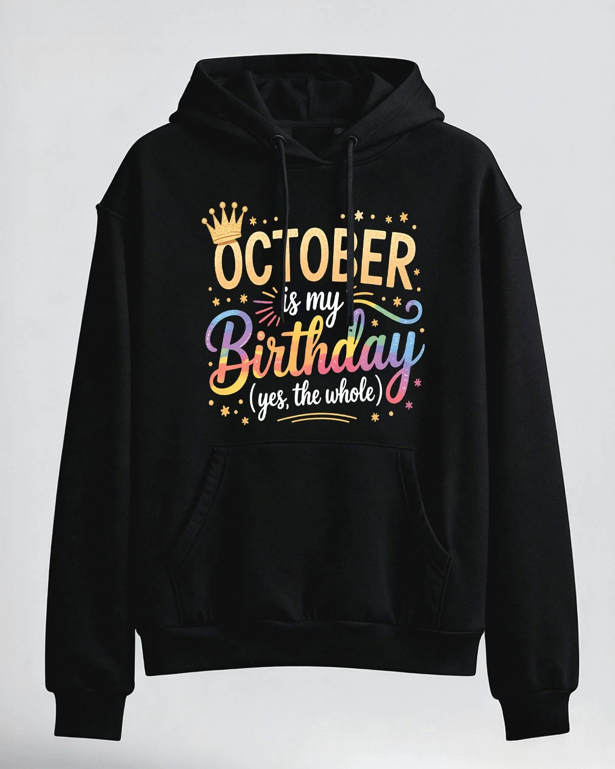 October Is My Birthday Crown Cozy Graphic Hoodie for Men and Women - Funny Casual, Long Sleeve, Soft Fabric, Comfortable Fit